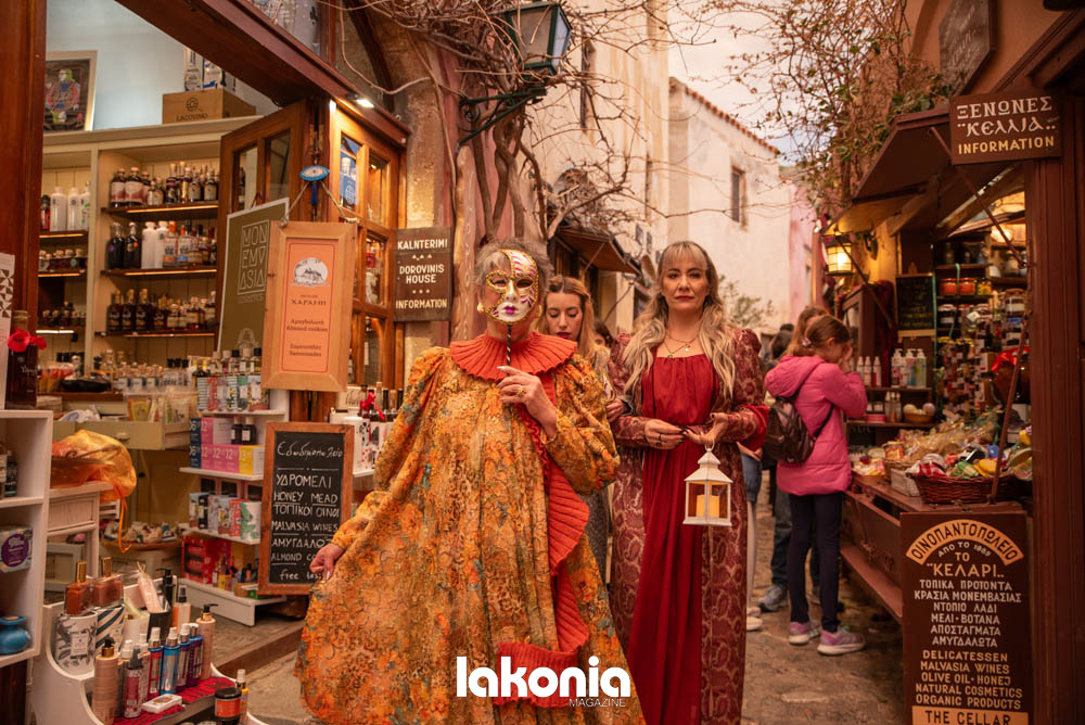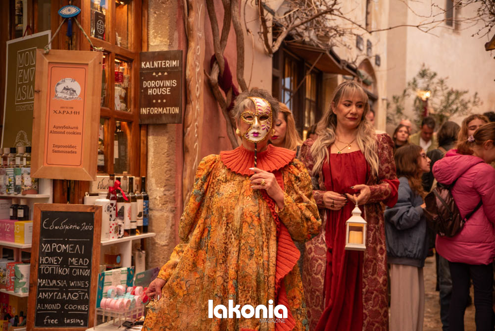 Ξεχωριστή θέση στο αποκριάτικο πρόγραμμα κατείχε και φέτος η καθιερωμένη «Βενετσιάνικη Περαντζάδα», που πραγματοποιήθηκε το Σάββατο 21 Φεβρουαρίου στο κάστρο της Μονεμβασίας. Η ιστορική καστροπολιτεία μετατράπηκε σε ένα ζωντανό σκηνικό άλλης εποχής, καθώς δεκάδες συμμετέχοντες, ντυμένοι με εντυπωσιακές βενετσιάνικες στολές και μάσκες, περιηγήθηκαν στα λιθόστρωτα σοκάκια, δημιουργώντας εικόνες μοναδικής αισθητικής.