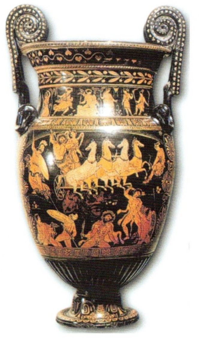 Εικ.1 Ο Εγκέλαδος βρίσκει το θάνατο από την Αθηνά. Δια χειρός ζωγράφου του Λυκούργου, 350 π.Χ. Απούλια Ν. Ιταλίας. Πηγή: Μουσείο Τάραντος.