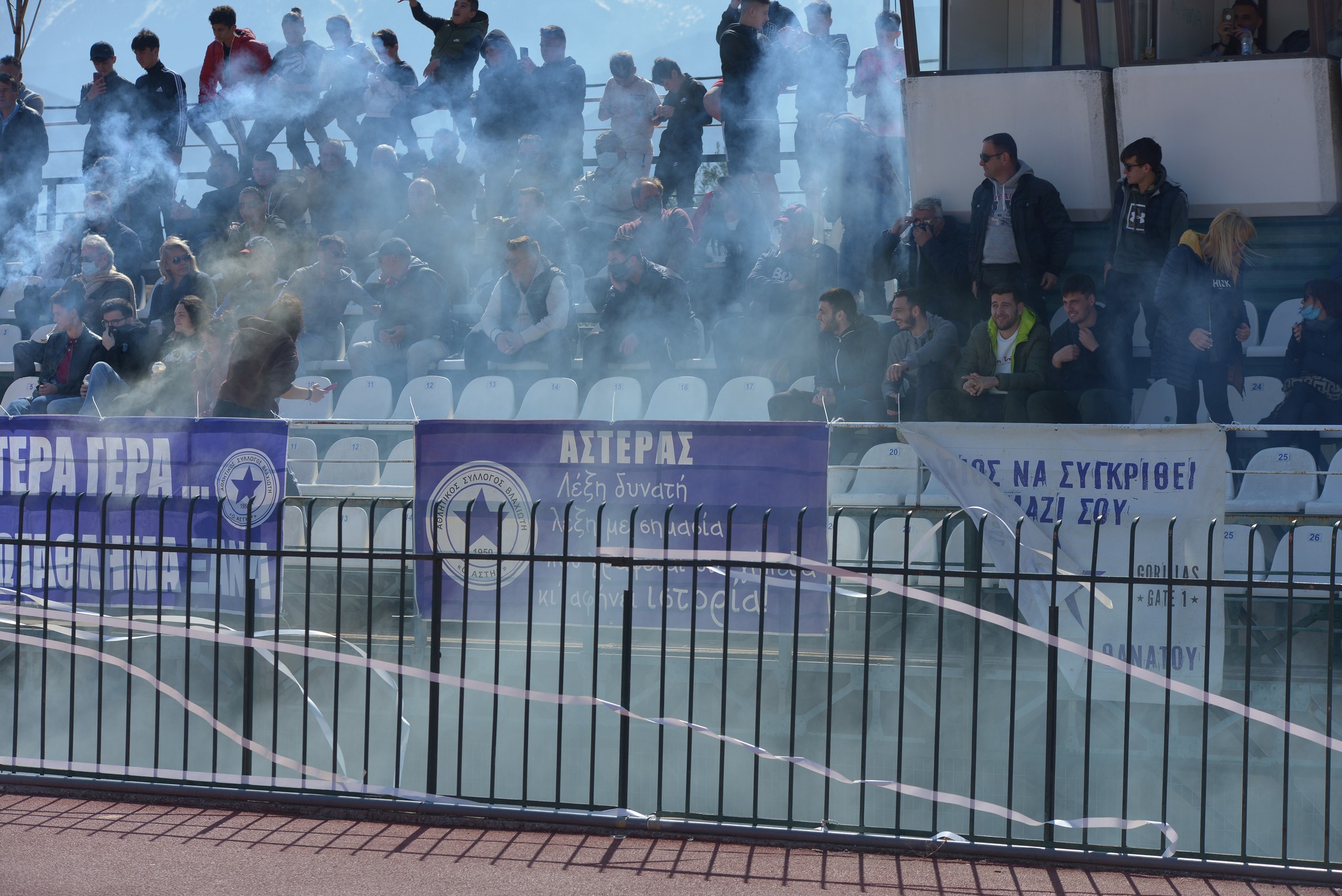 Ο Αστέρας άνοιξε το σκορ στο 23΄ όταν ο Τασιούλης εκμεταλλεύτηκε το λάθος γύρισμα του Σαρρή στον Τσέλιο και δεν δυσκολεύτηκε να στείλει τη μπάλα στα δίχτυα, κάνοντας το 1-0. Οι φιλοξενούμενοι στη συνέχεια είχαν την πρωτοβουλία των κινήσεων και πίεσαν για την ισοφάριση, όμως το γκολ ήρθε πάλι για τους Λάκωνες, Στο 42΄, μετά από ενέργεια του Παπούλη ο Αναστασόπουλος «έγραψε» με σουτ το 2-0, που ήταν και το αποτέλεσμα του ημιχρόνου.