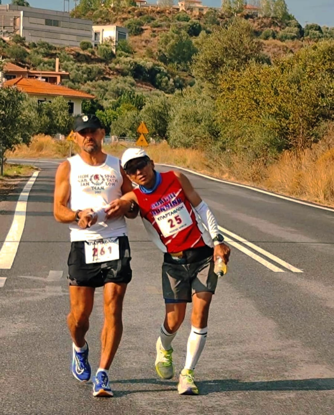 Πρωταγωνιστές μιας άκρως συγκινητικής εικόνας που εκτυλίχθηκε στο 41ο Σπάρταθλον έγιναν ένας Ούγγρος κι ένας Ιάπωνας δρομέας. Στη διάρκεια του αγώνα πριν την άφιξη στη Σπάρτη, ο αθλητής από τη χώρα του ανατέλλοντος ηλίου χρειάστηκε βοήθεια και ο Ευρωπαίος συνοδοιπόρος του ήταν εκεί και την προσέφερε με μεγαλείο ψυχής, χωρίς δισταγμό και αναστολή, με τους δύο να γίνονται «ένας» και με κοινό ρυθμό να βαδίζουν αργά αλλά συντροφικά προς Σπάρτη.