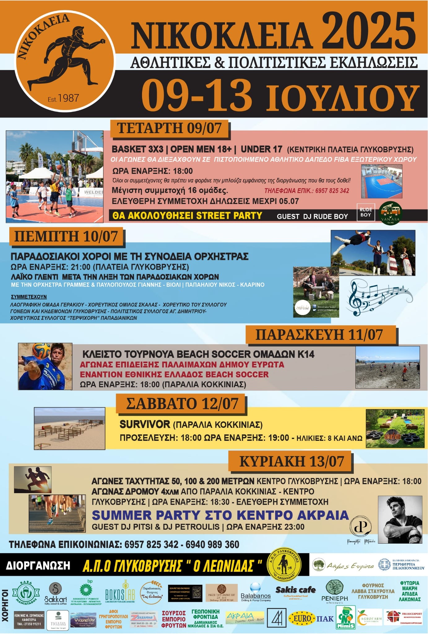 - 18.30: Αγώνας δρόμου 4 χλμ. από Παραλία Κοκκινιάς έως Κέντρο Γλυκόβρυσης