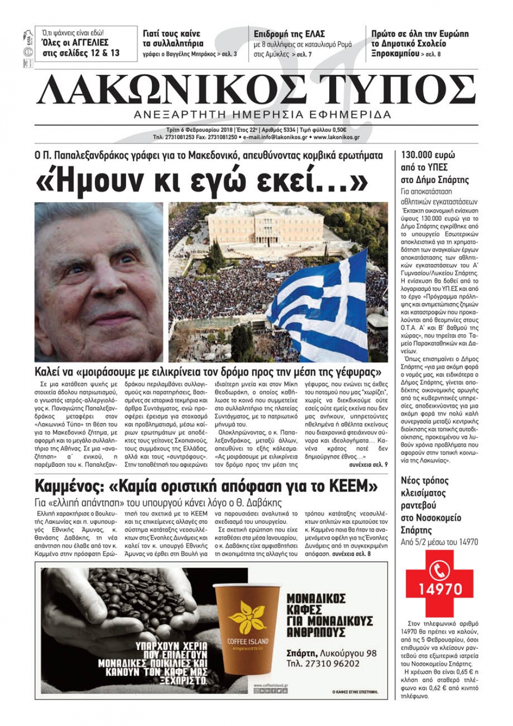 Δευτέρα, 05 Φεβρουάριος 2018 20:25