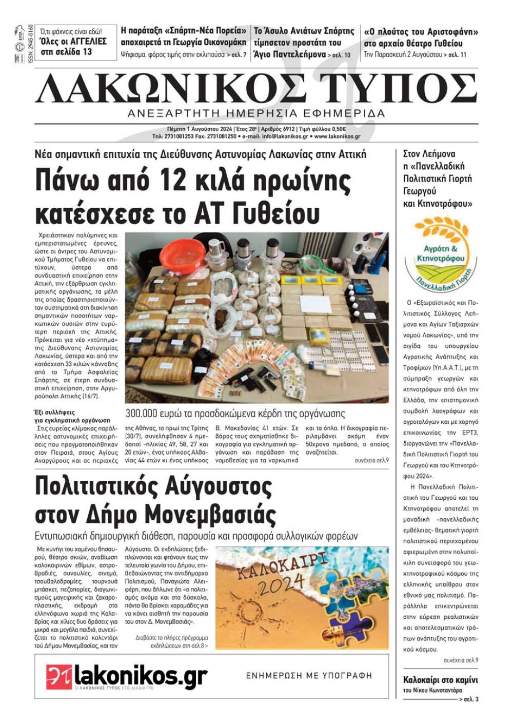 Σε «μπελάδες» για λίγη κάνναβη άνδρας στον Δ. Μονεμβασίας