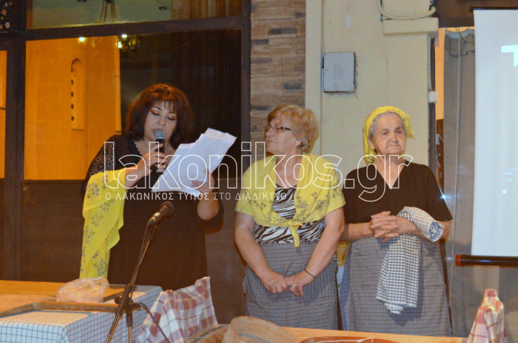 Ιδιαίτερες ευχαριστίες απευθύνθηκαν στο γηραιότερο μέλος του Συλλόγου Γυναικών Θεολόγου, τη γιαγιά Αλεξάνδρα, που με κέφι και μπρίο συμμετείχε στα θεατρικά δρώμενα, δίνοντας μια ξεχωριστή νότα στη βραδιά.