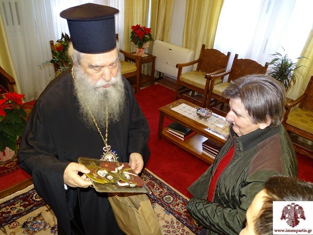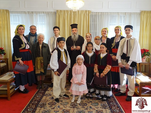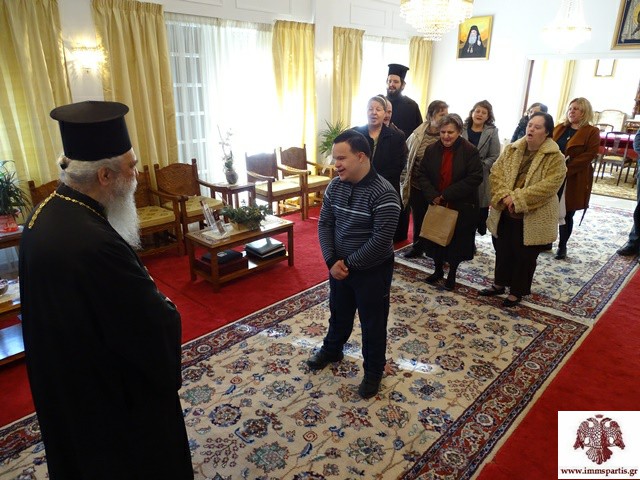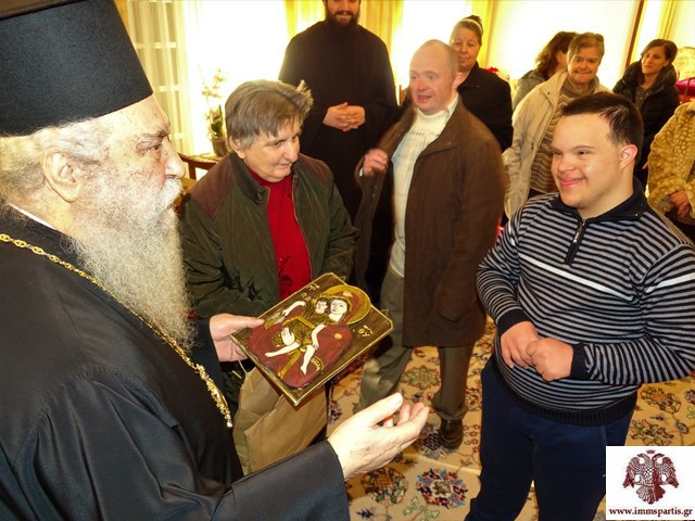 Την αρχή έκανε ομάδα τροφίμων του Ασύλου Ανιάτων Σπάρτης, με τη συνοδεία εργαζομένων και τον διευθυντή του ιδρύματος πρωτ. Ιωάννη Προφύρη. Οι τρόφιμοι έψαλαν τα κάλαντα και στη συνέχεια προσέφεραν στον Μητροπολίτη ένα δώρο που οι ίδιοι είχαν φιλοτεχνήσει με τη βοήθεια των εκπαιδευτικών του Ιδρύματος.