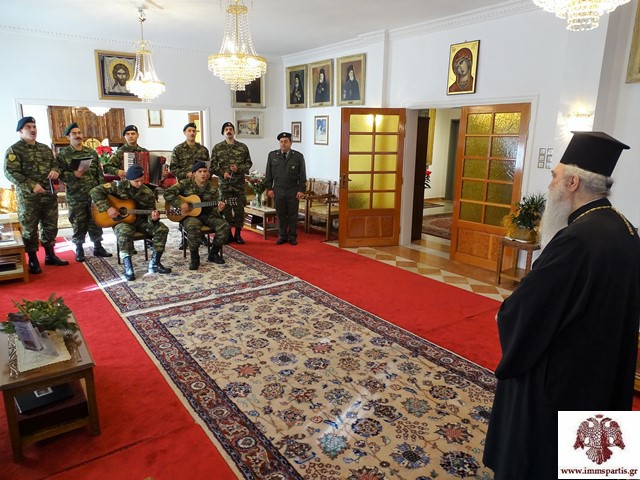 Ακολούθησε η χορωδία του Κέντρου Εκπαίδευσης Εφοδιασμού Μεταφορών. Οι στρατευμένοι ολοκληρώνοντας το πρόγραμμά τους, ευχήθηκαν χρόνια πολλά στο Σεβασμιώτατο ο οποίος με τη σειρά του, τους συνεχάρη, τους έδωσε τις πατρικές του ευχές για ευλογημένα Χριστούγεννα και καλή χρονιά ενώ ακολούθησε ένα μικρό κέρασμα.