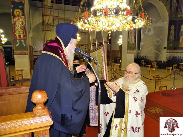 Ο Σεβασμιώτατος, αφού εξήγησε όλο το νόημα του περίφημου ύμνου και ιδιαίτερα την κατάληξή του, έκανε έκκληση στον Άγιο Νικόλαο να μας λυτρώσει, με τις ικεσίες του προς τον Πανάγαθο Θεό, από την μάστιγα της πανδημίας.