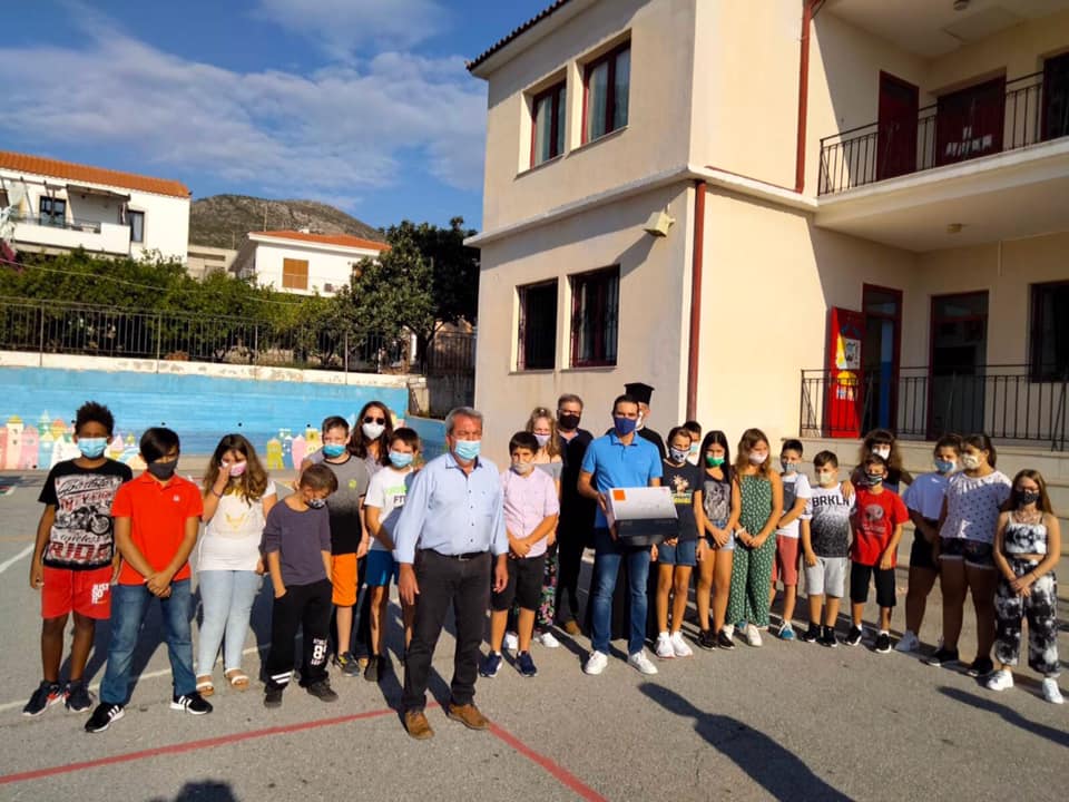 Μετά το πέρας του αγιασμού της Δευτέρας 13/9, παρέδωσαν στον διοικητή του Αστυνομικού Τμήματος Μονεμβασίας, έναν φορητό απινιδωτή, ο οποίος αγοράστηκε με χρήματα που συγκέντρωσαν οι μαθητές, με την καθοδήγηση της δασκάλας τους κ. Αγγελικής Χαραμή.