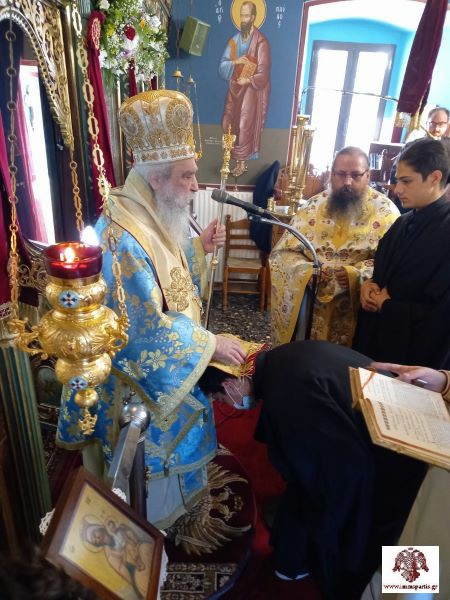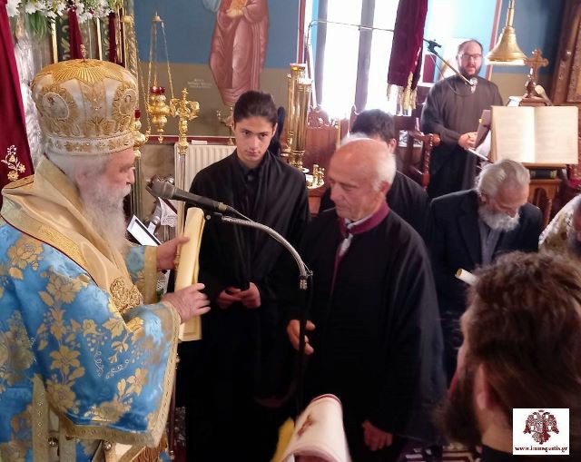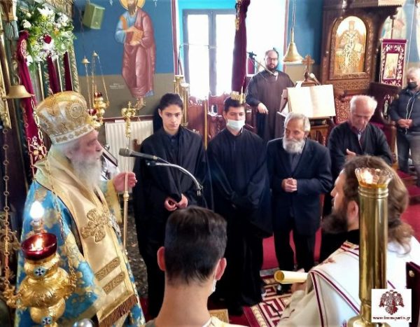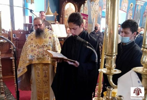 Αμέσως μετά, ο Σεβασμιώτατος σε μία συμβολική κίνηση για τη συνέχεια της Εκκλησίας και την παραλαβή της σκυτάλης από τη νέα γενιά ευσεβών χριστιανών, χειροθέτησε Αναγνώστες τους δύο υιούς του εφημερίου του χωριού, πατρός Νεκταρίου Κουτσογιαννόπουλου, τον Παναγιώτη και τον Ανδρέα, που είναι μαθητές Λυκείου.