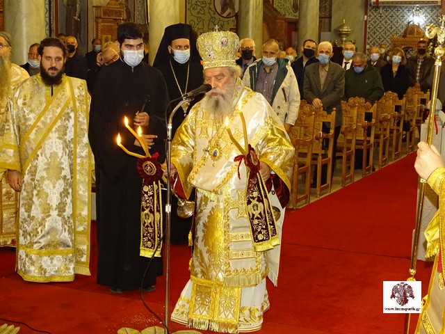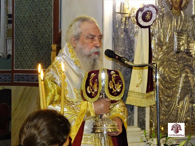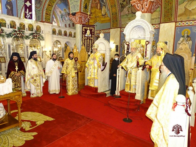 Κατακλείοντας την πανηγυρική λατρευτική σύναξη, ο Σεβασμιώτατος Μητροπολίτης κ. Ευστάθιος ευχήθηκε να θέσουμε ως στόχο της εφήμερης επίγειας ζωής μας τη σωτηρία της άφθαρτης ψυχής μας. Στη συνέχεια εξέφρασε ευγνώμονες ευχαριστίες στους Σεβασμιώτατους Μητροπολίτες Μεσσηνίας και Γλυφάδας, που ανταποκρίθηκαν στην πρόσκλησή του και πρόσφεραν πνευματική τροφή στους ευλαβείς χριστιανούς της περιοχής με τα κηρύγματά τους. Επίσης ευχαρίστησε εγκάρδια όλους όσοι λάμπρυναν τον εορτασμό με την παρουσία τους και ιδιαίτερα τους τοπικούς άρχοντες, τους εφημέριους και τους λοιπούς διακονούντες του Ιερού Ναού, τον ευαγή Κλήρο, τους καλλικέλαδους ιεροψάλτες και τους ευσεβείς πιστούς. Ξεχωριστές ευχαριστίες απηύθυνε προς τον Ραδιοφωνικό Σταθμό της Εκκλησίας της Ελλάδος για την αναμετάδοση τόσο του Εσπερινού όσο και της Θ. Λειτουργίας.