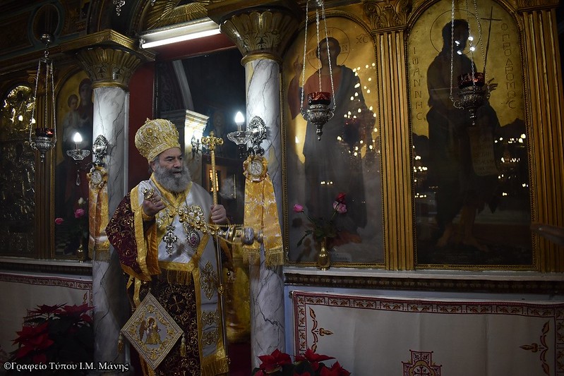 Η Θεία Λειτουργία των Χριστουγέννων τελέστηκε στον Καθεδρικό Ναό του Αγίου Γεωργίου Γυθείου. Ο σεβασμιώτατος Μητροπολίτης Μάνης κ. Χρυσόστομος Γ’ μετέβη στον ναό και τέλεσε τη λειτουργία, συμπαραστατούμενος από τον προϊστάμενο του ναού π. Νήφωνα Καρολεμέα.