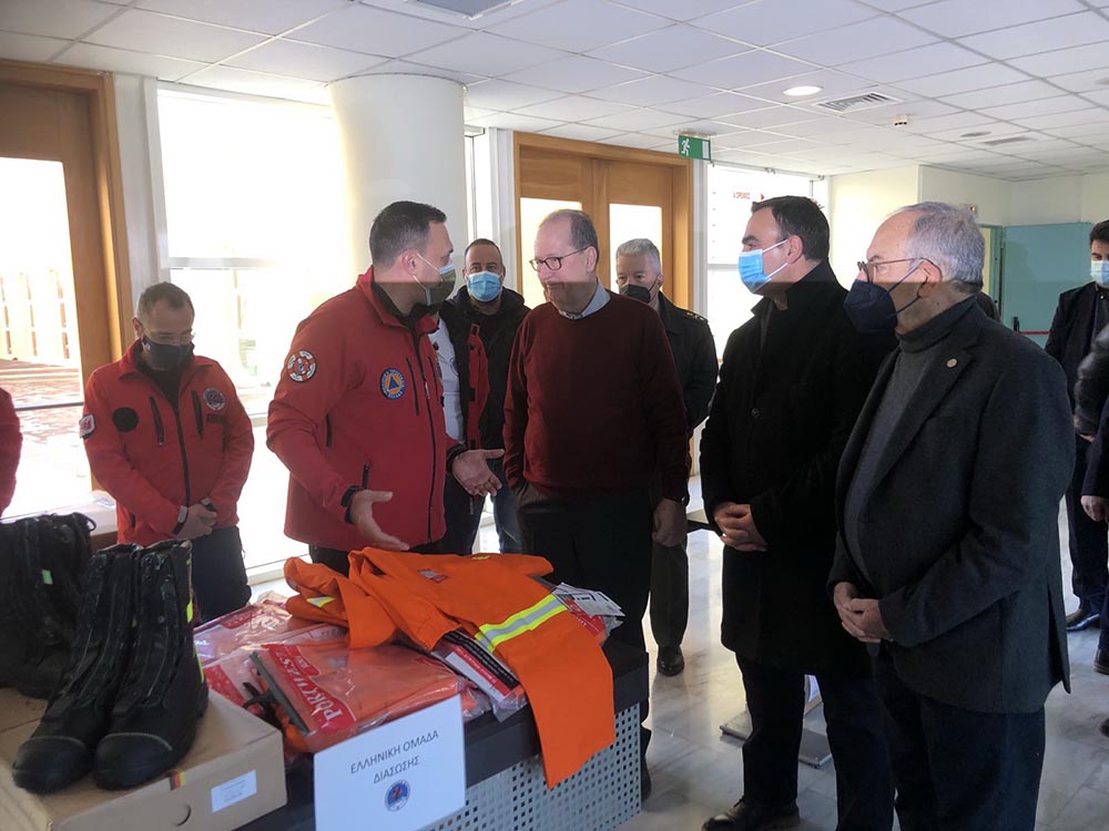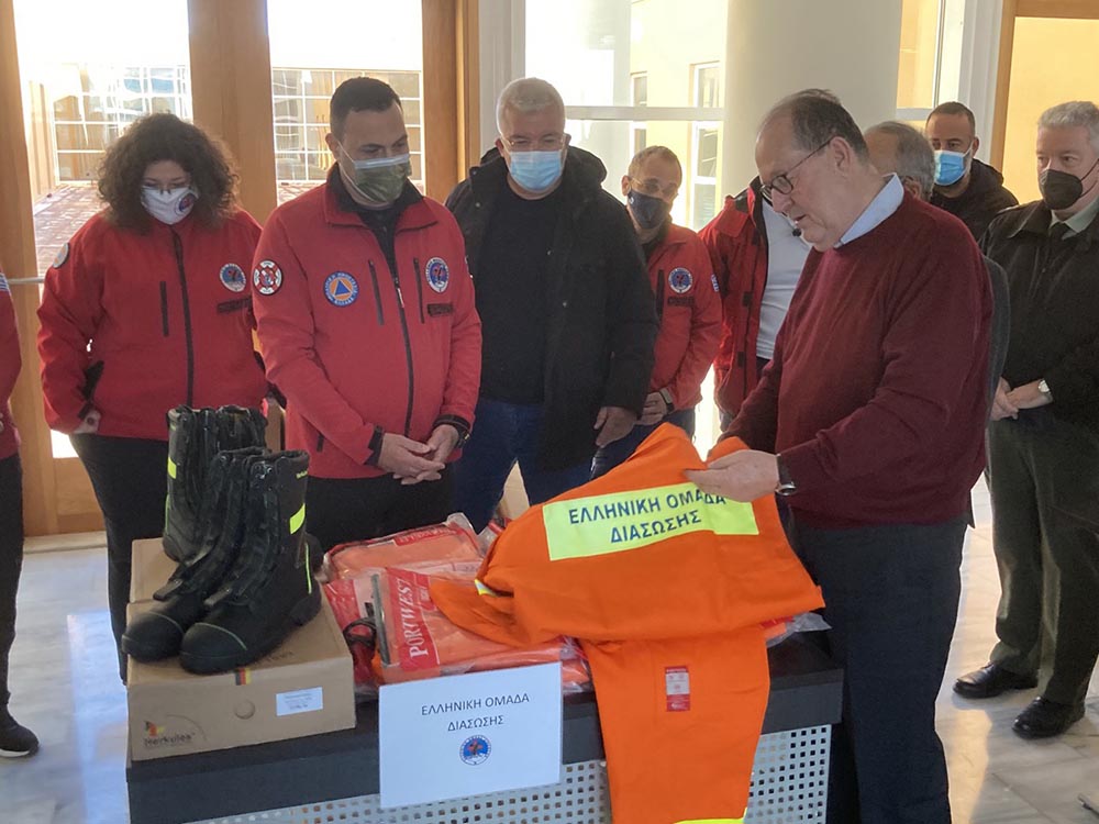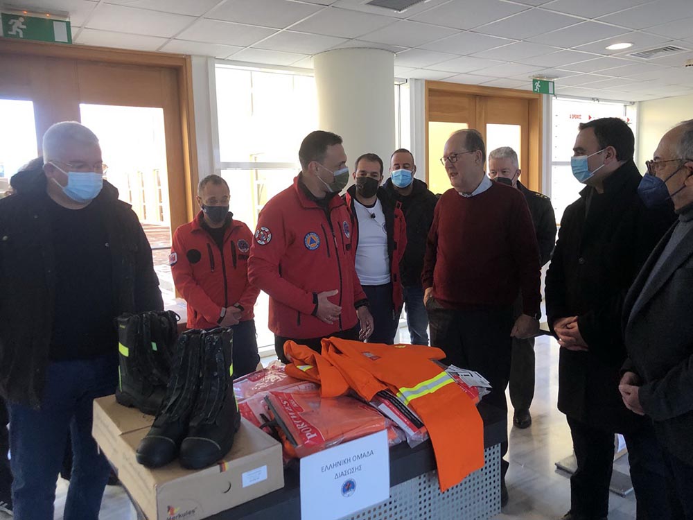 Πρώτη στάση του κ. Νίκα, ήταν ο Διοικητήριο της Περιφερειακής Ενότητας Λακωνίας, στη Σπάρτη, όπου παρουσίασε τις πλήρως εφοδιασμένες αποθήκες Πολιτικής Προστασίας της περιφέρειας ενώ διένειμε υλικό και είδη πολιτικής προστασίας σε εκπροσώπους εθελοντικών οργανώσεων του νομού.