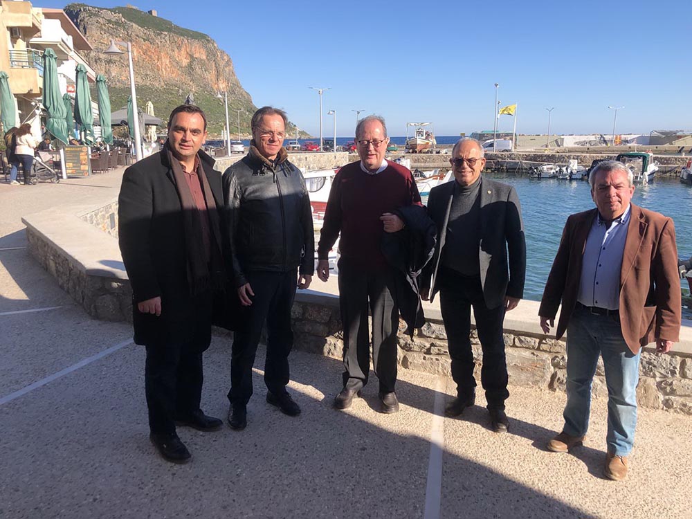 Η επίσκεψη του περιφερειάρχη Πελοποννήσου Π. Νίκα ολοκληρώθηκε αργά το μεσημέρι της Παρασκευής στη Μονεμβασία, όπου από κοινού με τους αντιπεριφερειάρχες Λακωνίας Ν. Τζινιέρη και τον θεματικό ομόλογό του Υποδομών και Μεταφορών Θ. Βερούτη, είχε συνάντηση με τον δήμαρχο Ηρακλή Τριχείλη και αντιδημάρχους.