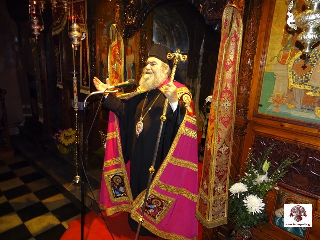 Στην ομιλία του ο σεπτός Ποιμενάρχης αναφέρθηκε αρχικά στην αγάπη του Θεού προς τον Άνθρωπο, που έχει πολλά ονόματα ανάλογα με τις εκδηλώσεις της, όπως παντοδύναμη, προνοητική, ανεκτική, σαρκωμένη και σταυρική – θυσιαστική. Στη συνέχεια μίλησε για την ανταπόδοση που οφείλει ο Άνθρωπος γι’ αυτή την αγάπη, που θα πρέπει να εκδηλώνεται με την «εν Χριστώ ζωή». Ολοκληρώνοντας εξέφρασε ευχαριστίες στην αδελφότητα της Μονής, που υπό τον Ηγούμενο Πανοσ. Αρχ. Εφραίμ Μιλτιάδου, δίνει καθημερινά εδώ και χρόνια μαρτυρία πνευματικότητας, ήθους και σεμνότητας, τα παιδιά με τους δασκάλους τους που έδωσαν μία νότα χαράς και αισιοδοξίας στον εορτασμό, καθώς και τους πολυάριθμους προσκυνητές από τη Λακωνία και όμορους Νομούς που συμμετείχαν στις θρησκευτικές ακολουθίες με πνεύμα κατάνυξης.