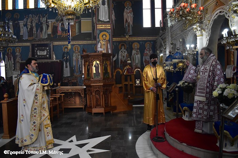 Σε ανταπόδοση της ευγενούς και φιλανθρώπου αυτής πράξης του ευλαβούς παπα – Στράτου, ο σεβασμιώτατος Μητροπολίτης Μάνης κ. Χρυσόστομος Γ΄, κατόπιν κανονικής αδείας κι ευλογίας του επιχωρίου σεβασμιωτάτου Μητροπολίτη Μονεμβασίας και Σπάρτης κ. Ευσταθίου, μετέβη την Κυριακή της Τυροφάγου 6/3 στον Ιερό Ναό Αγίας Τριάδος Σκάλας και τέλεσε τη Θεία Λειτουργία, κηρύσσοντας τον Θείο Λόγο.