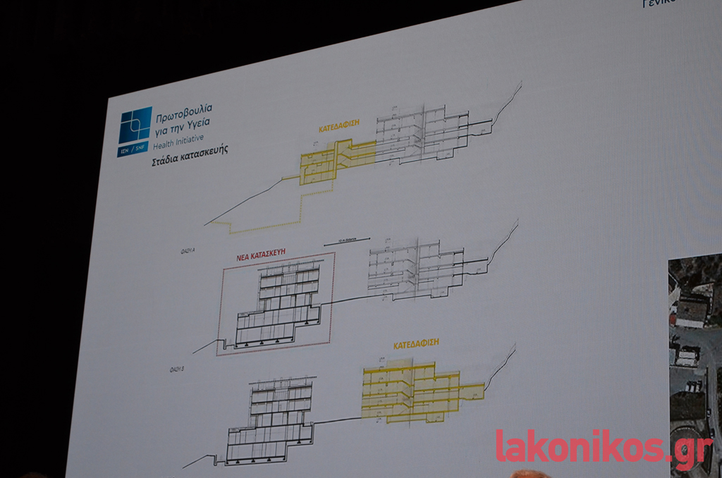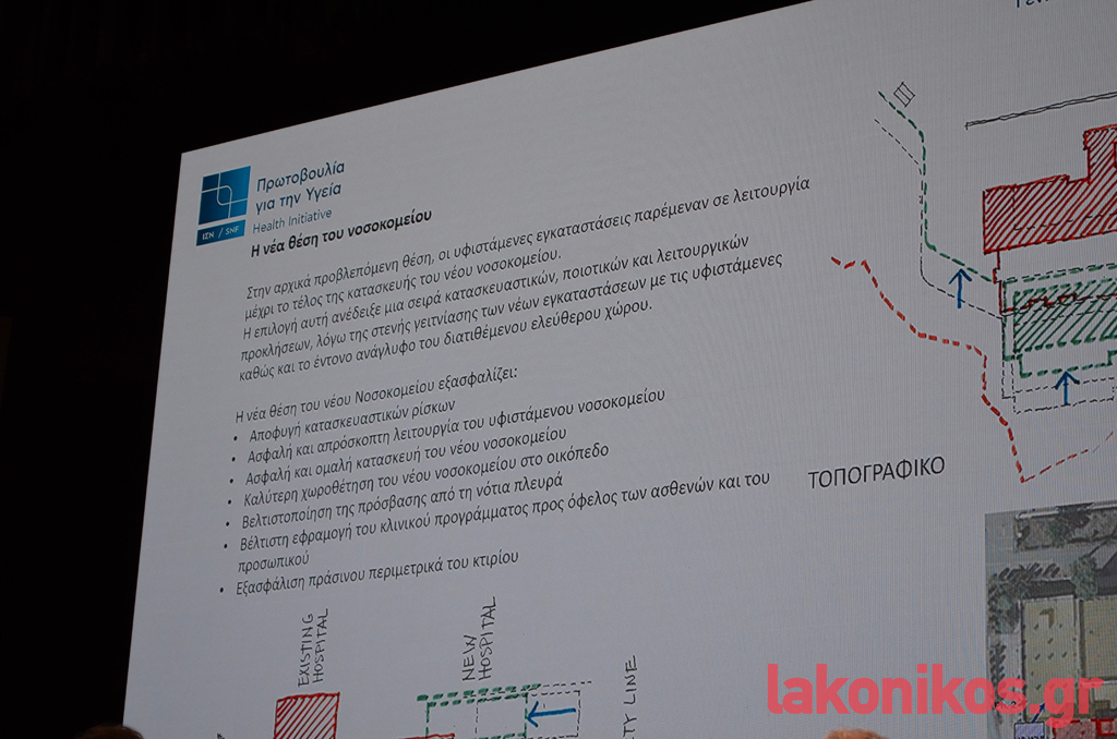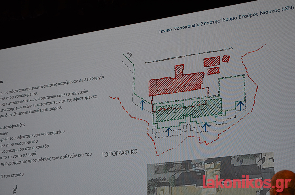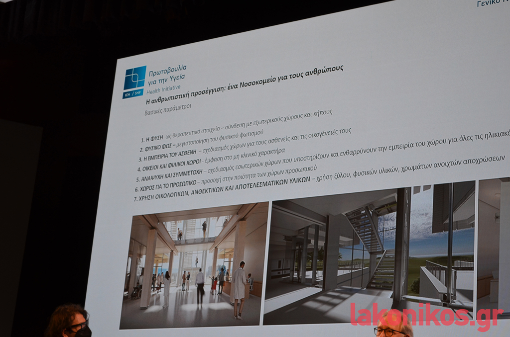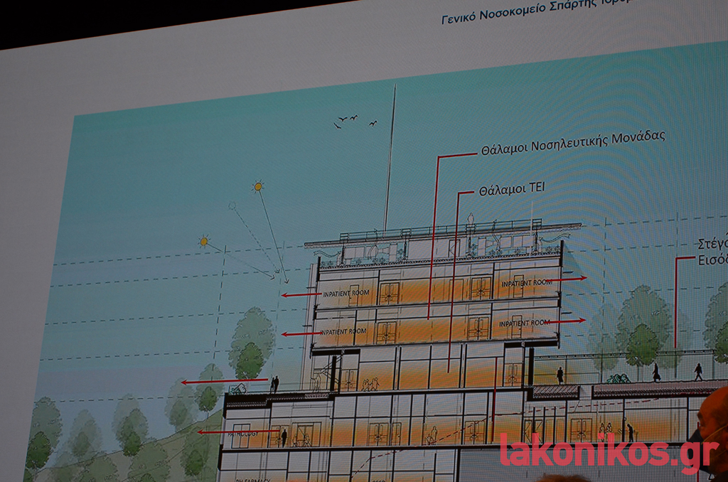Το νέο νοσοκομείο που θα αντικαταστήσει τις υφιστάμενες υποδομές φιλοδοξεί να αποτελέσει πρότυπο δημόσιας νοσηλείας, περίθαλψης και φροντίδας για τους κατοίκους της Λακωνίας και πρόκειται για ένα υπερσύγχρονο, δημόσιο νοσοκομείο διεθνών προδιαγραφών, με ιατρο-διαγνωστικό εξοπλισμό τελευταίας τεχνολογίας, που περιλαμβάνει αποκλειστικά μονόκλινα και δίκλινα δωμάτια νοσηλείας, σχεδιασμένο να είναι ενεργειακά αποδοτικό και φιλικό προς το περιβάλλον και, κυρίως, ανοιχτό και προσβάσιμο για όλους τους ασθενείς.