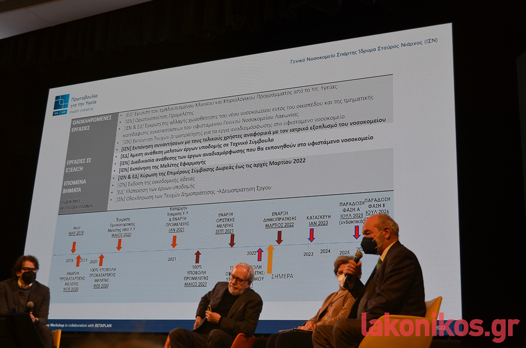 Στο πνεύμα της ανοιχτής, διαρκούς και αμφίδρομης επικοινωνίας που, εξαρχής, επιδιώκει να έχει με την τοπική κοινωνία της Σπάρτης, το Ίδρυμα Σταύρος Νιάρχος διοργάνωσε εκδήλωση-συζήτηση για το όραμα, τη φιλοσοφία του σχεδιασμού και την εξέλιξη του έργου της νέας υπερσύγχρονης μονάδας Υγείας. Η δράση για την πρόοδο που έχει σημειωθεί από την τελευταία ανοιχτή ενημέρωση (σσ τον Ιούλιο του 2021), έλαβε χώρα το απόγευμα της Τρίτης 8/3 στο Πνευματικό Κέντρο Δ. Σπάρτης. Το «παρών», μεταξύ άλλων, έδωσαν ο γενικός γραμματέας Πρωτοβάθμιας Φροντίδας Υγείας, Μάριος Θεμιστοκλέους, ο διοικητής της 6ης Υγειονομικής Περιφέρειας, Ιωάννης Καρβέλης, οι διοικητές των Νοσοκομείων Σπάρτης και Μολάων, Εύη Παπαγεωργίου και Κώστας Κορωνιός, αντίστοιχα, εκπρόσωποι αρχών, φορέων και συλλογικοτήτων της Λακωνίας και της Πελοποννήσου.