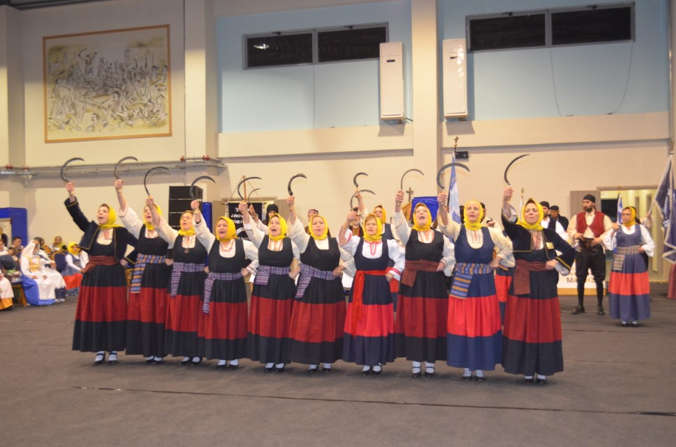 Ακολούθησε η αναπαράσταση της ορκωμοσίας των μανιάτικων οικογενειών από μαθητές του Λυκείου Αρεόπολης.