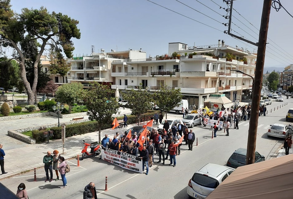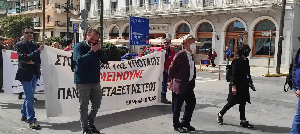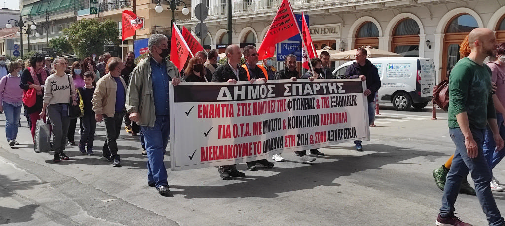 Μετά τις τοποθετήσεις των εκπροσώπων των φορέων ακολούθησε πορεία στους κεντρικούς δρόμους της Σπάρτης, με τους απεργούς να πραγματοποιούν διαμαρτυρία κι έξω από το τοπικό υποκατάστημα της ΔΕΗ, φωνάζοντας συνθήματα κατά των αυξήσεων στην ενέργεια.