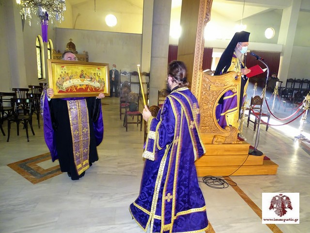 Νωρίτερα, ο Ιεράρχης τέλεσε το Μυστήριο του Ιερού Ευχελαίου στον Ιερό Ναό Αγίου Νικολάου, Αγίων Κωνσταντίνου και Ελένης και Αγίου Φανουρίου στον οικισμό Κατσαρού στις Αμύκλες.