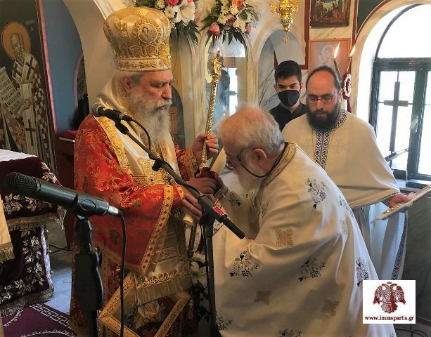 Ο σεβασμιώτατος ευχήθηκε στον π. Βασίλειο υγεία και μακροημέρευση, ενώ παράλληλα συνεχάρη τόσο τον τιμώμενο κληρικό, όσο το εκκλησιαστικό συμβούλιο και τους δωρητές, για την άψογη αγιογράφηση του ναού, τον οποίο ο Ιεράρχης είχε εγκαινιάσει το 1993.