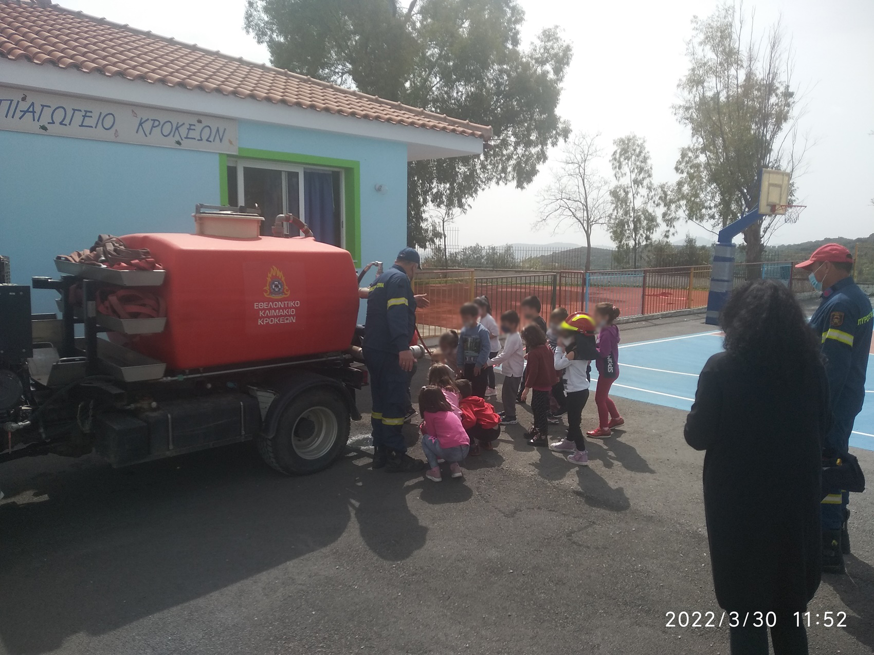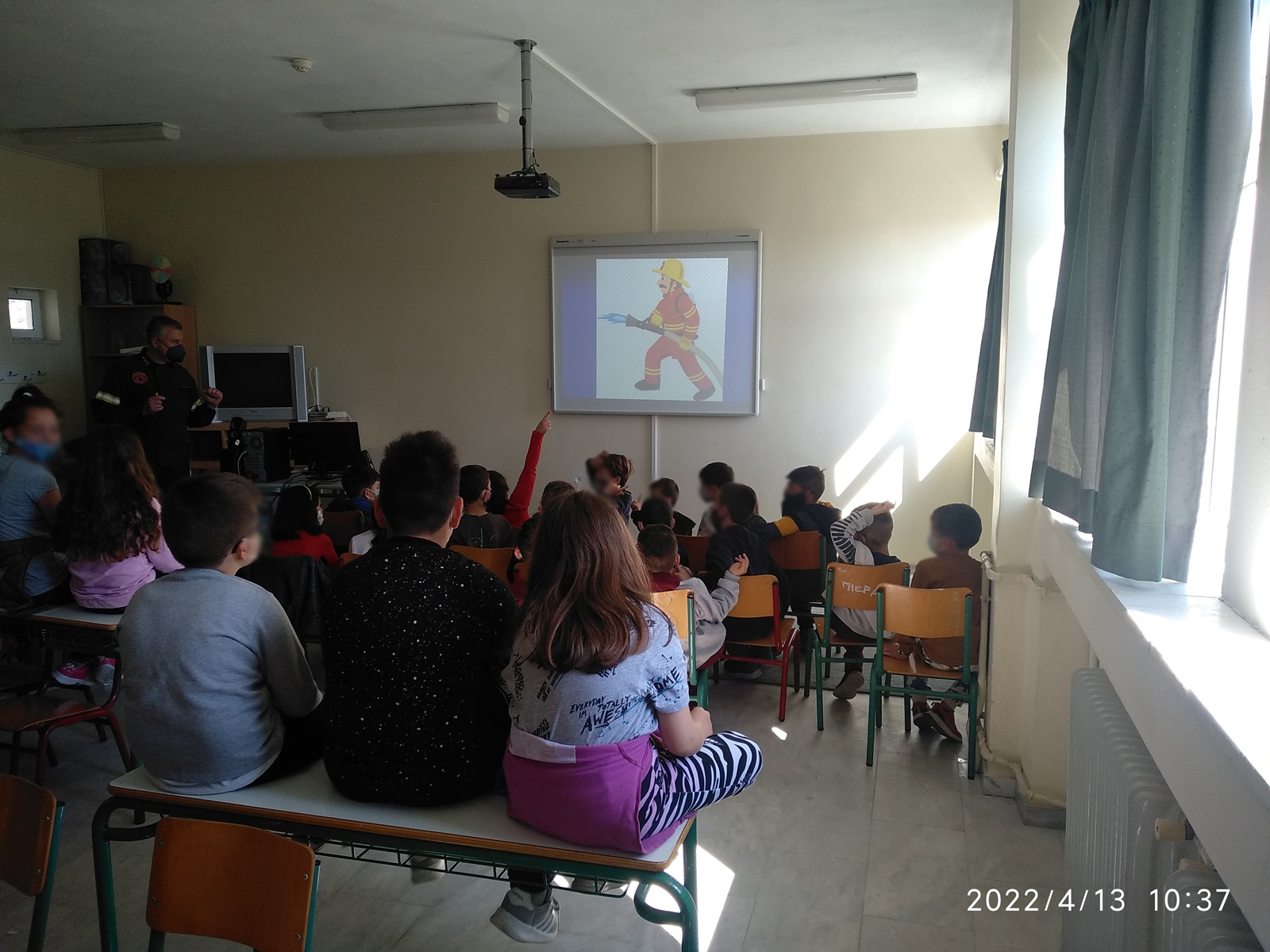 Οι μαθητές των τάξεων είχαν την ευκαιρία να παρακολουθήσουν κατάλληλο κινηματογραφικό υλικό κινουμένων σχεδίων και θέμα το πυροσβεστικό αντικείμενο (πυροσβεστικό όχημα, πυροσβεστική υπηρεσία, πυρόσβεση πυρκαγιάς κ.α.)
