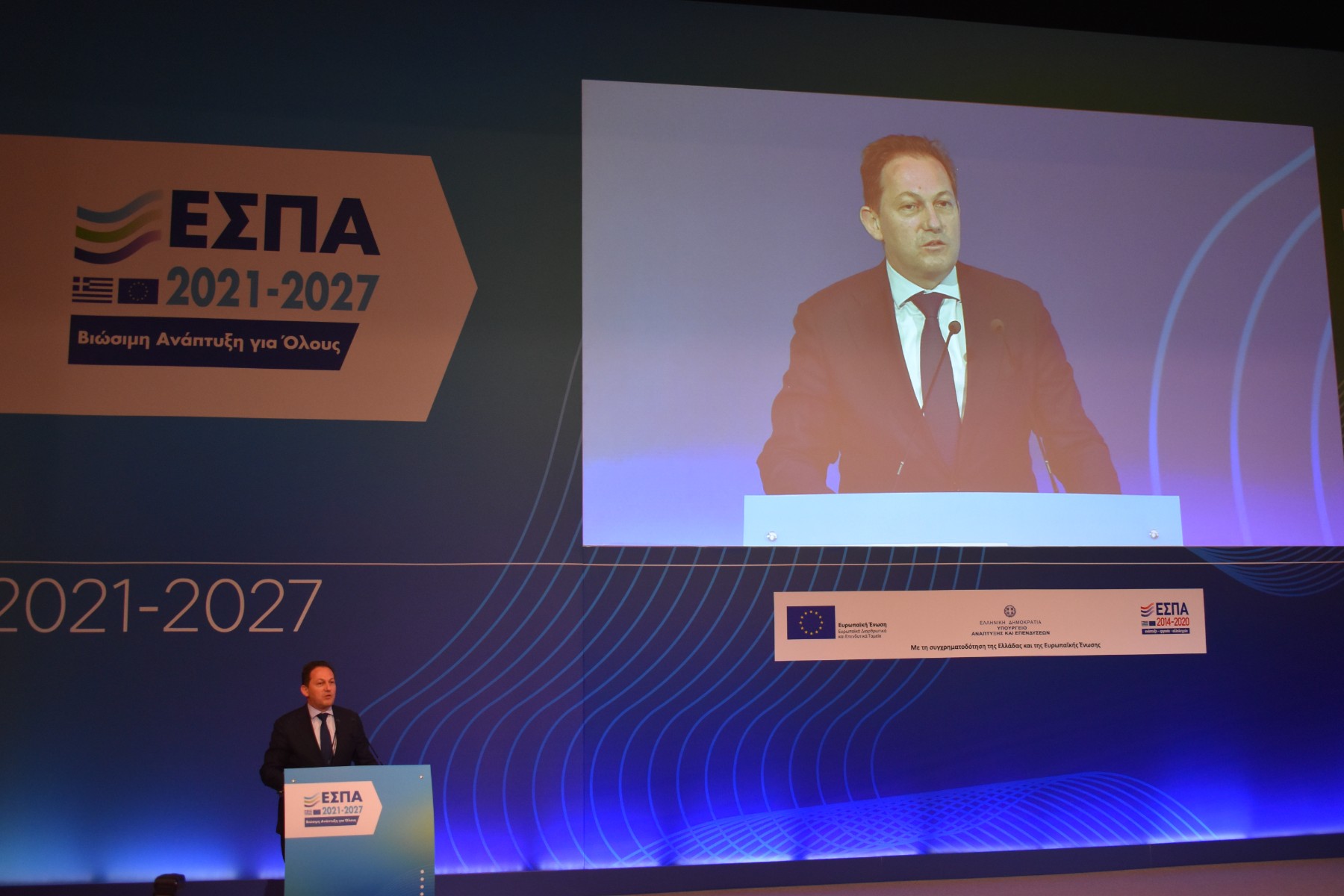 «Είμαστε η πρώτη χώρα σε όλη την Ευρωπαϊκή Ένωση που έχουμε πλέον εγκεκριμένα προγράμματα τα οποία θα τεθούν σε εφαρμογή τις αμέσως επόμενες μέρες και θα είμαστε η πρώτη χώρα σε όλη την Ευρωπαϊκή Ένωση που θα έχουμε εκταμίευση χρημάτων από τη νέα προγραμματική περίοδο μέσα στο 2022» τόνισε ο υπουργός Ανάπτυξης και Επενδύσεων Άδωνις Γεωργιάδης, υπογραμμίζοντας πως η νέα προσπάθεια «αποτελεί ένα μεγάλο εθνικό στοίχημα να συνεχίσουμε και να εντείνουμε την προσπάθειά μας για να απορροφήσουμε γρηγορότερα τους πόρους από το νέο ΕΣΠΑ και για την πράσινη ανάπτυξη και την βιώσιμη ανάπτυξη, για την έρευνα και την τεχνολογία». Σύμφωνα με τον ίδιο, το νέο ΕΣΠΑ αποτελεί «ένα εργαλείο με το οποίο αποδεικνύεται έμπρακτα ότι η ένταξη της χώρας στην ευρωπαϊκή οικογένεια ωφελεί την καθημερινότητα όλων των ανθρώπων, ωφελεί την καθημερινότητα του ελληνικού λαού και δικαιώνει και την παράταξη της Νέας Δημοκρατίας για την ιστορική μας επιλογή πριν από 40 χρόνια να βάλουμε την Ελλάδα στην ευρωπαϊκή οικογένεια».