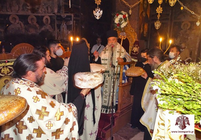 Το απόγευμα της παραμονής τελέστηκε ο μέγας πανηγυρικός αρχιερατικός εσπερινός μετ’ αρτοκλασίας, χοροστατούντος του σεβασμιωτάτου Μητροπολίτη κ. Ευσταθίου και τη συμμετοχή του Καθηγούμενου της ΙΜ Αγίων Τεσσαράκοντα Μαρτύρων, πανοσ. αρχ. Εφραίμ Μιλτιάδου κι αρκετών κληρικών από όμορες περιοχές.