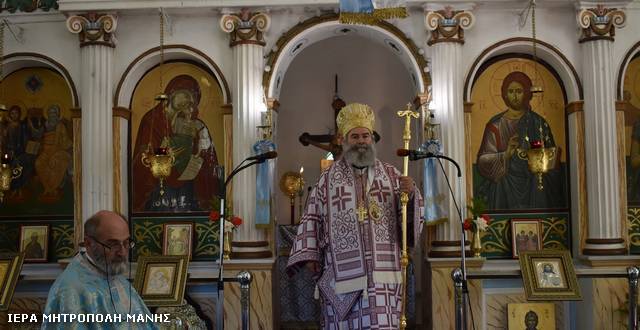 Ο Ιεράρχης Μάνης τέλεσε τη Θεία Λειτουργία, συμπαραστατούμενος από τον εφημέριο του ναού π. Ηλία Λύρα και κήρυξε τον Θείο Λόγο, ερμηνεύοντας την παραβολή του πλουσίου και του πτωχού Λαζάρου, ως περιγράφεται στο κατά Λουκάν Ευαγγέλιο (κεφ. 16 αι στίχοι 19-31).
