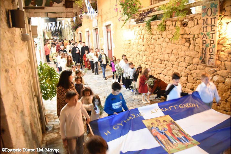 Πλήθος Μανιατών συμμετείχε τόσο στον πανηγυρικό εσπερινό όσο και στη λιτανεία με σκοπό να λάβει την χάρη και ευλογία των Ασωμάτων Αγγέλων.