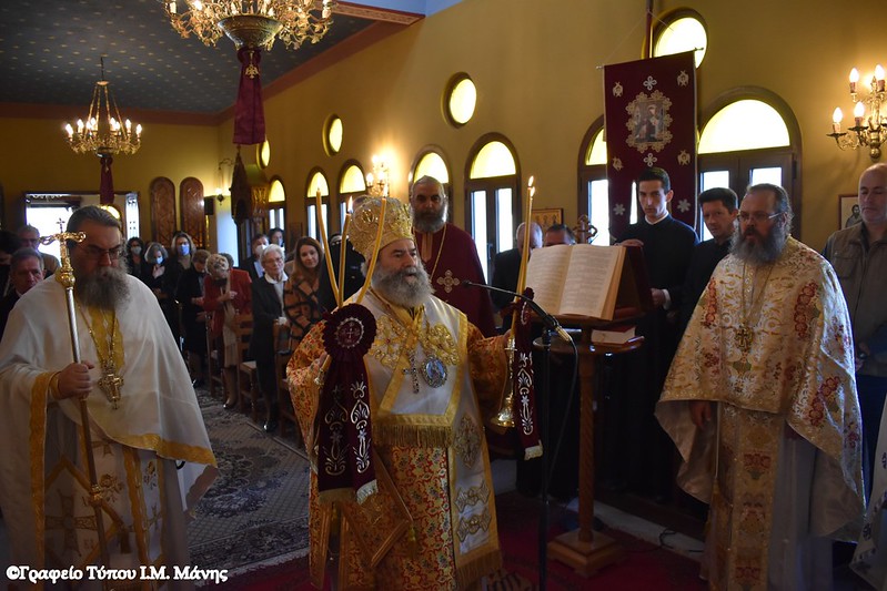 Μετά το πέρας της Λειτουργίας, στην οποία συμμετείχαν ιερείς της Μάνης, ο κ. Χρυσόστομος Γ΄ δέχθηκε τις ευχές των πιστών.