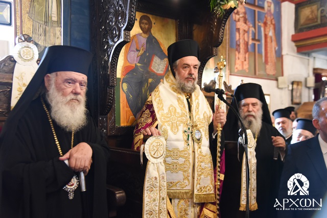 Εν συνεχεία, κλήρος και λαός, μετέβησαν στον Μητροπολιτικό Ναό της Αγίας Κυριακής, όπου πραγματοποιήθηκε η ακολουθία της ενθρονίσεως παρουσία του μακαριωτάτου Αρχιεπισκόπου Αθηνών και πάσης Ελλάδος κ. Ιερωνύμου. Ο αρχιγραμματέας της Ιεράς Συνόδου, θεοφιλ. Επίσκοπος Ωρεών κ. Φιλόθεος ανέγνωσε την εγκύκλιο της Συνόδου και το Προεδρικό Διάταγμα περί εκλογής, αναγνωρίσεως και καταστάσεως του νέου Μητροπολίτη.