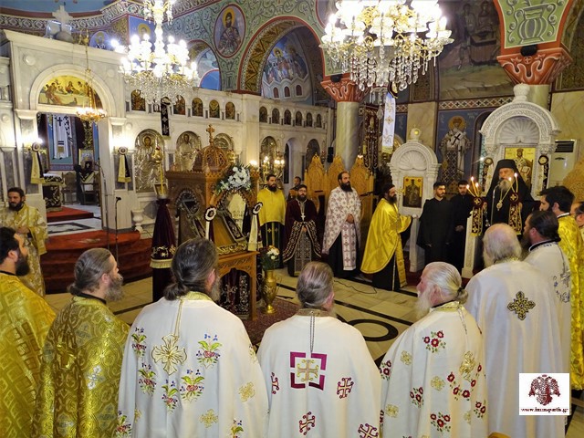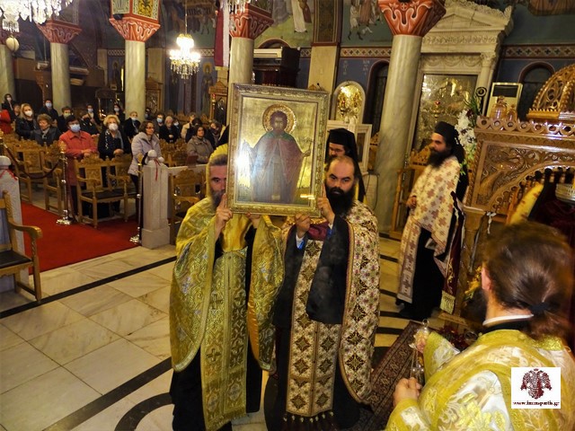 Κατά τη διάρκεια του εσπερινού έγινε η ενθρόνιση της ιερής εικόνας στον σολέα του ναού, ενώ εψάλησαν τα μακαριστήρια του Οσίου Νίκωνος από τον σεβασμιώτατο, τους ιερείς, τους ιεροψάλτες και το εκκλησίασμα.