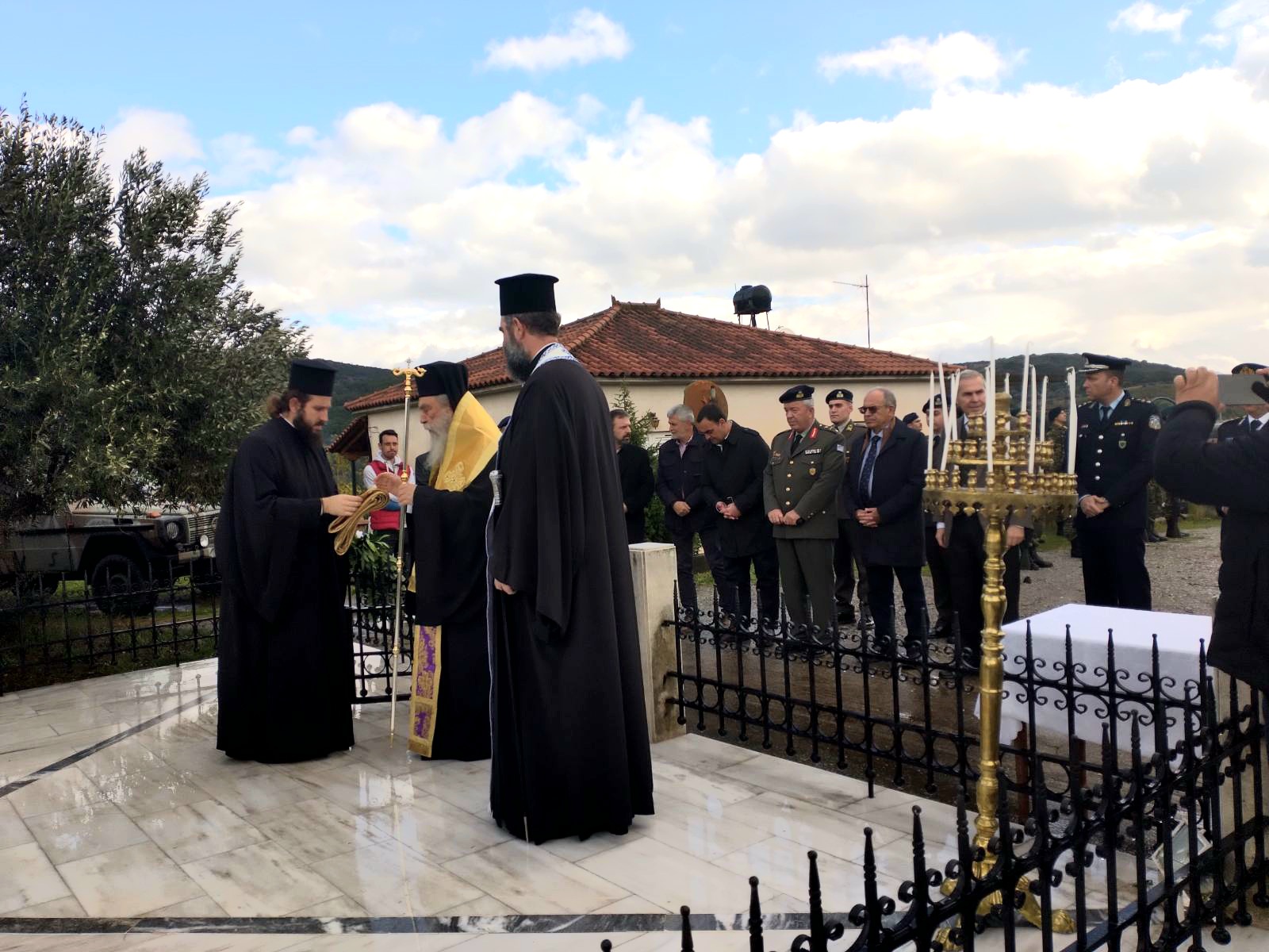 Την επιμνημόσυνη δέηση τέλεσε ο σεβασμιώτατος Μητροπολίτης Μονεμβασίας και Σπάρτης κ. Ευστάθιος, συλλειτουργούντος του εφημερίου Καραβά, π. Ηλία Βουρβουριώτη. Εκπροσωπώντας την στρατιωτική Φρουρά Λακωνίας στεφάνι κατέθεσε ο διοικητής του Κέντρου Εκπαιδεύσεως Εφοδιασμού Μεταφορών, Ταξίαρχος Κωνσταντίνος Πολίτης.