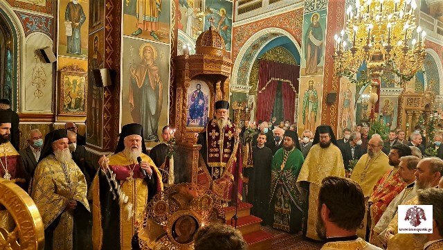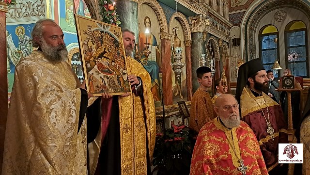 Κατά τη διάρκεια της πανηγυρικής εσπερινής λατρευτικής σύναξης, ο σεπτός ποιμενάρχης, απευθυνόμενος στους πιστούς που είχαν κατακλύσει τον ναό, μίλησε για την ενανθρώπιση του Θεού και τη θυσία Του για τη σωτηρία τού ανθρώπου. Επεσήμανε «την επιτακτική ανάγκη να μην ακυρώνουμε, με τις πράξεις και τους λογισμούς μας, την μέγιστη αυτή προσφορά αγάπης του δημιουργού μας, αλλά να φροντίζουμε καθημερινά να δίνουμε ομολογία πίστεως».