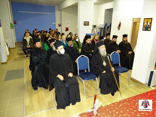 Τους παρευρισκόμενους καλωσόρισε ο υπεύθυνος του Γραφείου Νεότητας, ιερομόναχος π. Νικόδημος Καρκαμπάσης, μέλος της αδελφότητας της ΙΜ Αγίων Αναργύρων και εφημέριος Σελλασίας, ο οποίος αρχικά ευχαρίστησε τον σεπτό Ποιμενάρχη για την παρουσία του, αλλά κυρίως για την αμέριστη στήριξή του στο έργο του Γραφείου Νεότητας και γενικότερα για το ανύστακτο ενδιαφέρον του για τους νέους και τις νέες του τόπου. Επίσης, ο π. Νικόδημος ευχαρίστησε τον εφημέριο του ΙΝ Αγίου Σπυρίδωνος, πανοσ. αρχ. Σεραφείμ Κοσμά, για την φιλοξενία και όλους τους συνεργάτες του, για την προσφορά τους καθ’ όλη τη διάρκεια του έτους.