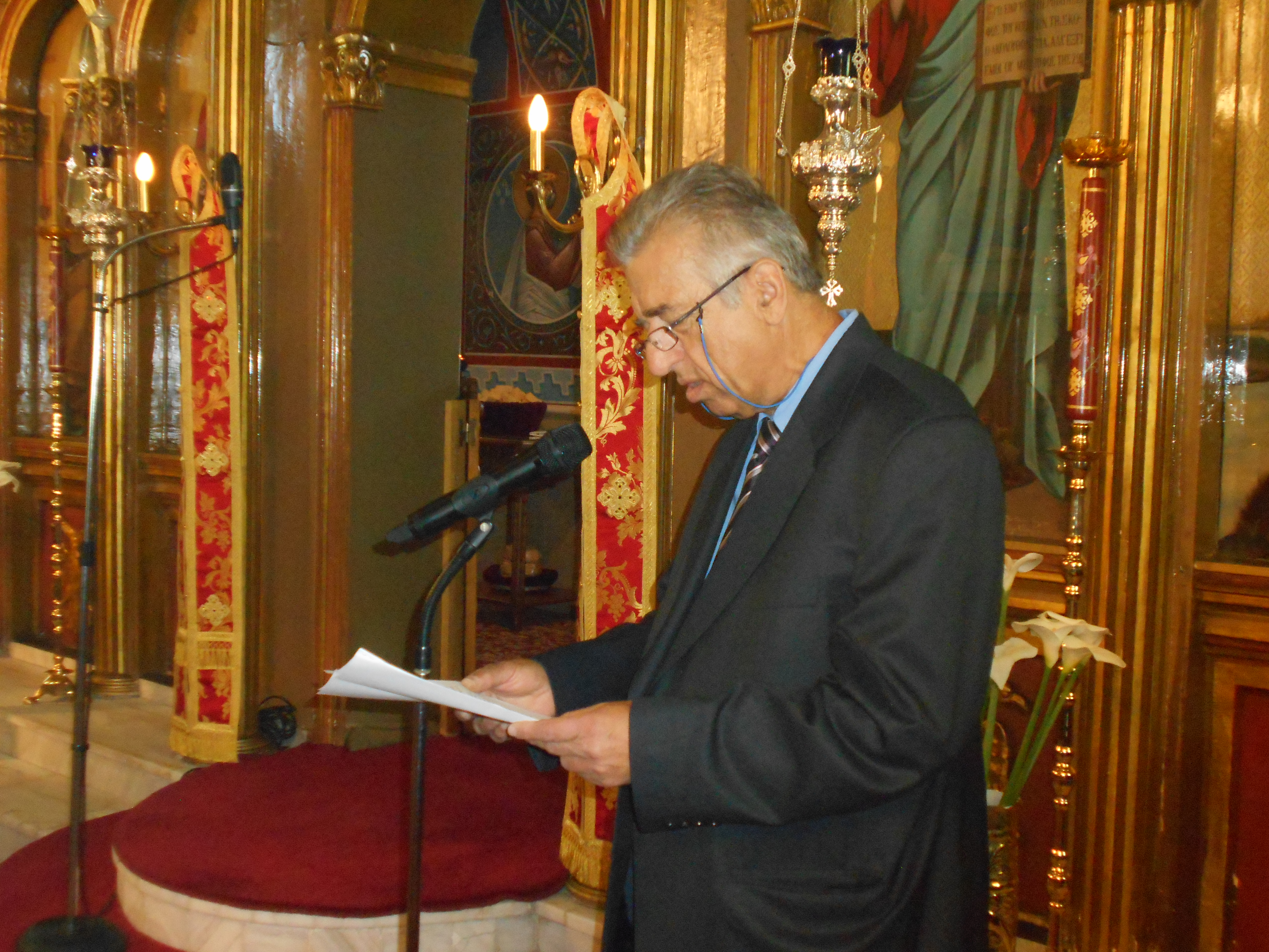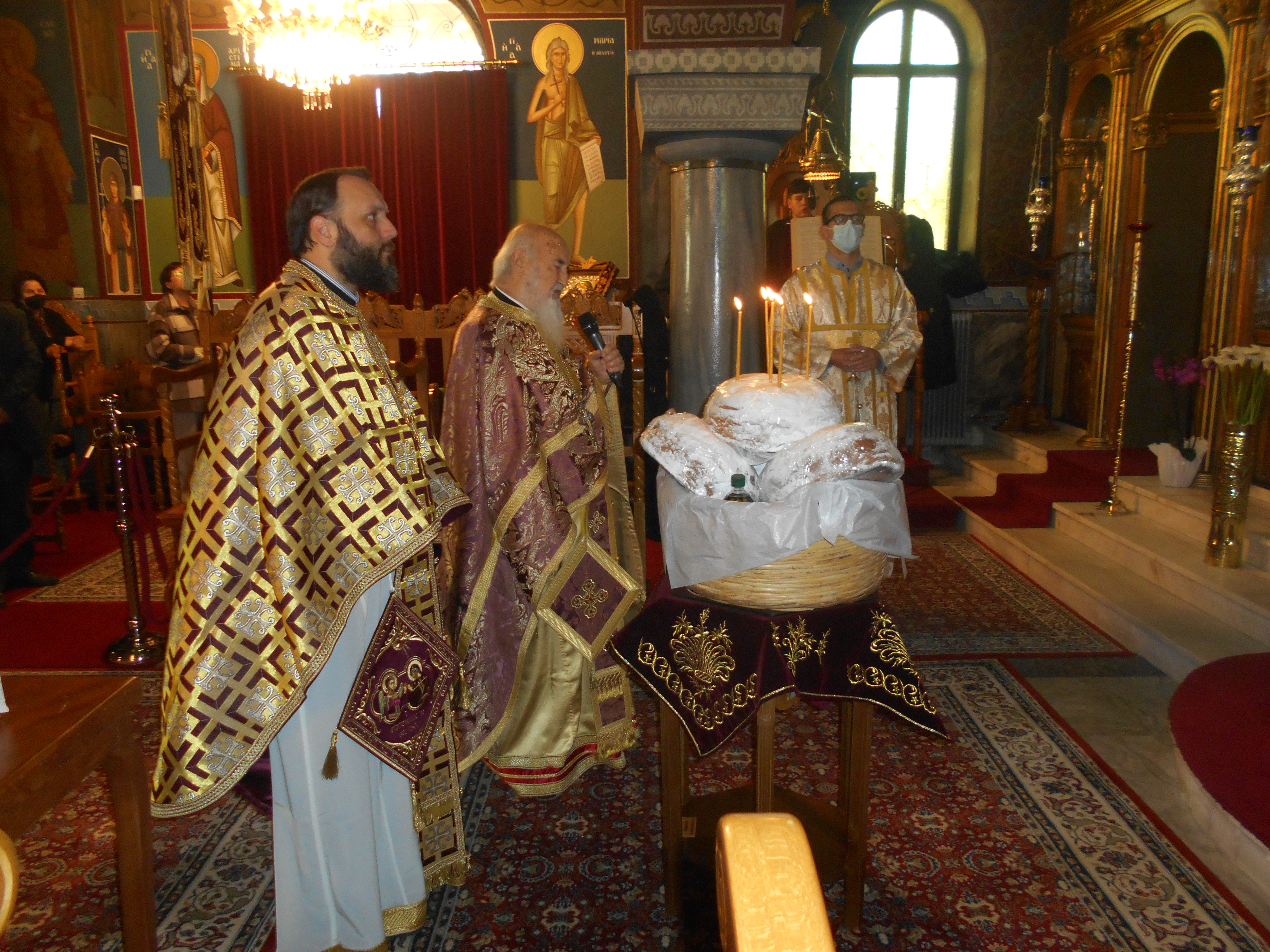 Τη Θεία Λειτουργία, την αρτοκλασία και το μνημόσυνο τέλεσε ο εφημέριος του ναού αρχιμανδρίτης Σεραφείμ Κοσμάς, συνεπικουρούμενος από τον πρωτοπρεσβύτερο π. Χρήστο Τσαγκαρούλη.