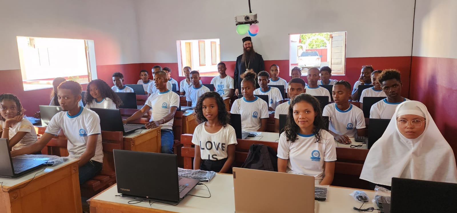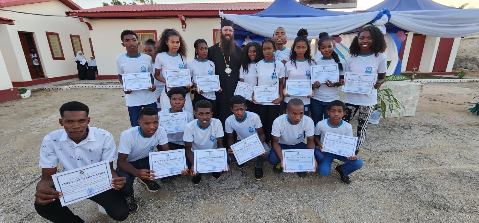 Πραγματοποιήθηκε η πρώτη αποφοίτηση σπουδαστών της Σχολής Πληροφορικής Μαδαγασκάρης, που ιδρύθηκε κι έλαβε «σάρκα και οστά» μετά από τη φωτισμένη σκέψη του θεοφιλεστάτου Λάκωνα Επισκόπου Τολιάρας και Νοτίου Μαδαγασκάρης, κ. Προδρόμου και τις σεπτές ευχές κι ευλογίες του μακαριωτάτου Πατριάρχου Αλεξανδρείας και πάσης Αφρικής, κ. Θεοδώρου.