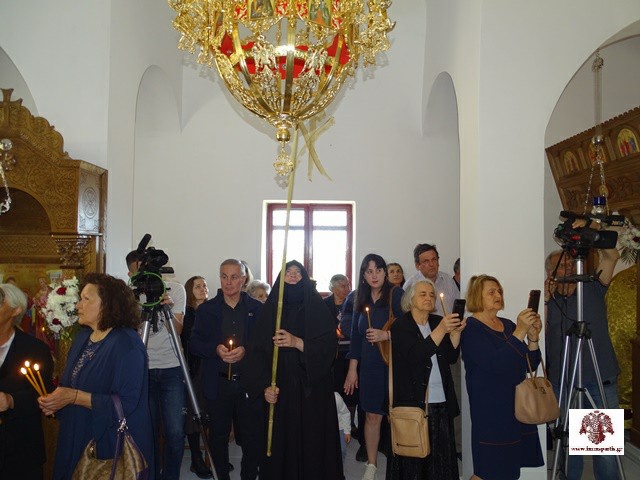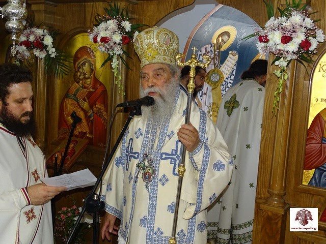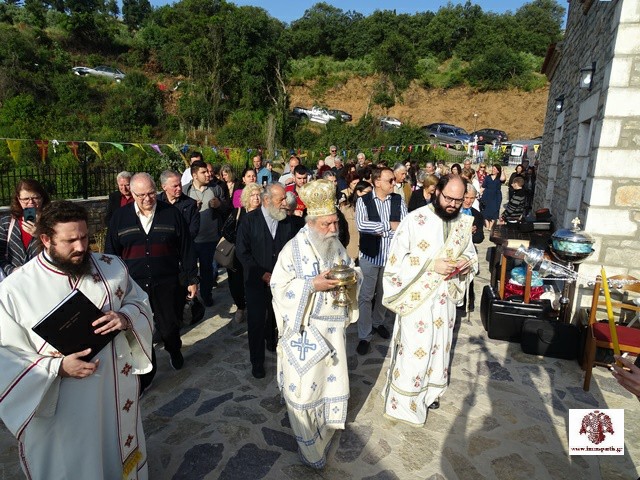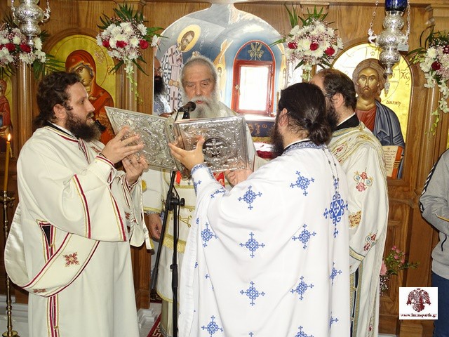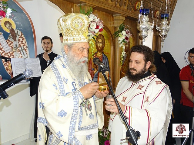 Ακολούθησε, σε χαρμόσυνο κλίμα, η τέλεση της πρώτης αρχιερατικής Θείας Λειτουργίας. Με την ολοκλήρωση της λατρευτικής σύναξης, ο σεβασμιώτατος επανέλαβε τις ευχαριστίες του προς όλους όσοι συνέβαλαν, επώνυμα ή ανώνυμα, στην ανέγερση του ναού, προς τους κληρικούς που συνέδραμαν και συμμετείχαν στην τελετή, καθώς και προς τους πολυάριθμους πιστούς, που με ευλάβεια παρακολούθησαν τα εγκαίνια.