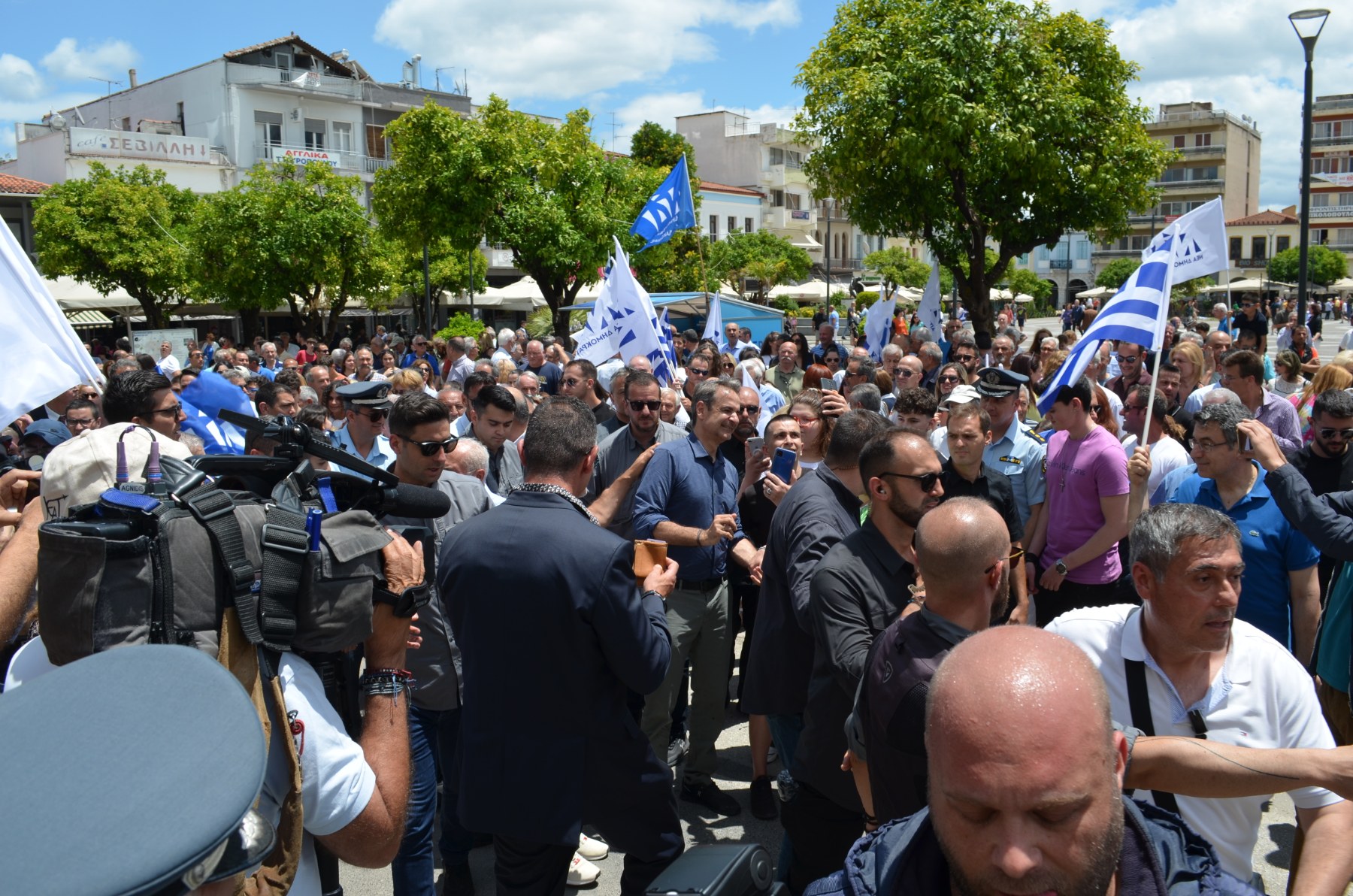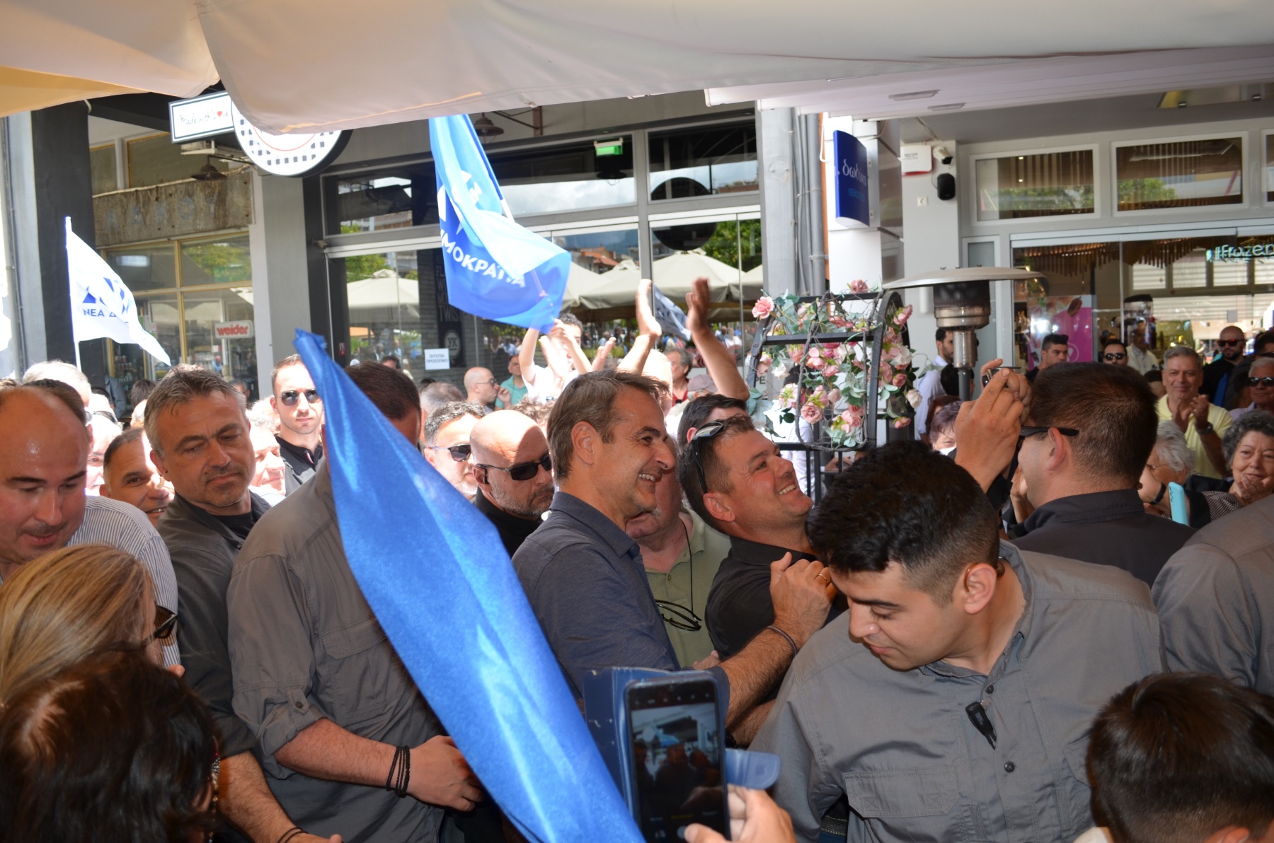 Ο πρόεδρος της ΝΔ κι εκ νέου διεκδικητής της πρωθυπουργίας έγινε αποδέκτης εκδηλώσεων αγάπης, θαυμασμού -έως και λατρείας σε κάποιες περιπτώσεις- κι ο ίδιος ανταπέδωσε με χαμόγελα και χειραψίες όλους όσοι τον πλησίασαν για να τον χαιρετήσουν και να φωτογραφηθούν μαζί του. Είναι χαρακτηριστικό ότι, από τη στιγμή της αποβίβασής του από το όχημά του επί της οδού Κ. Παλαιολόγου, ο Κυρ. Μητσοτάκης δεν σταμάτησε να γνωρίζει τις ενθουσιώδεις αντιδράσεις τόσο του κοινού που βρέθηκε στο κέντρο της πόλης για να τον καλωσορίσει, όσο και από τους θαμώνες των καταστημάτων εστίασης από τις οποίες διήλθε κατευθυνόμενος προς τον χώρο της ομιλίας του.