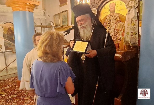 Μετά το πέρας της ακολουθίας πραγματοποιήθηκε απονομή τιμητικών πλακετών σε όλους όσοι συνέδραμαν στο έργο της επικεράμωσης του ΙΝ Αγίου Ανδρέα στις Καρυές, καθώς και στην επικείμενη διαμόρφωση του περιβάλλοντος χώρου, όπου ήδη έχουν ξεκινήσει οι πρόδρομες εργασίες.