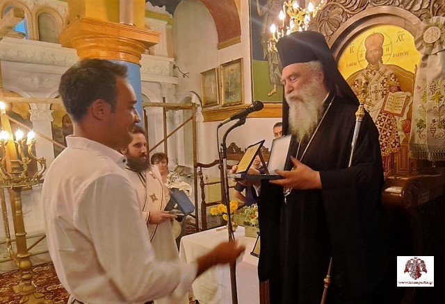 Πριν τις απονομές, ο εφημέριος του χωριού και μέλος της αδελφότητας της ΙΜ Αγίων Αναργύρων Πάρνωνα, αρχ. Λεόντιος Βαρδάκης, ευχαρίστησε τον Μητροπολίτη Ευστάθιο για την παρουσία του και το συνεχές ενδιαφέρον για την ενορία των Καρυών, αλλά και για την άμεση επίλυση διαδικαστικών θεμάτων αναφορικά με τις εργασίες της επικεράμωσης.