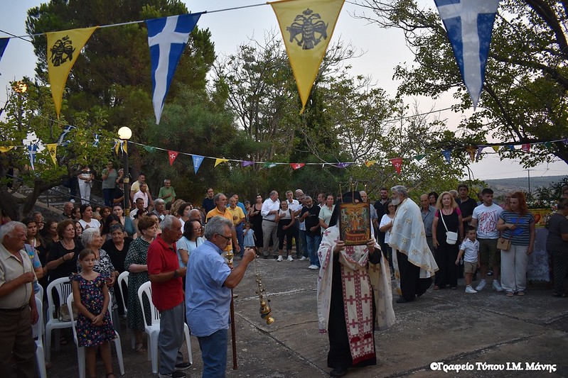 Πανηγυρικός εσπερινός με τη συμμετοχή του σεβασμιωτάτου Μητροπολίτη Μάνης κ. Χρυσοστόμου Γ΄ και των κληρικών, αρχ. Συμεών Λαμπρινάκου και αρχ. Αλυπίου Κατσαμπάκη, τελέστηκε την Τρίτη 22 Αυγούστου στην Ιερά Μονή Παναγίας Φανερωμένης στον Δρύαλο Μέσα Μάνης.