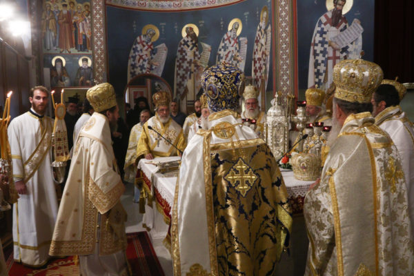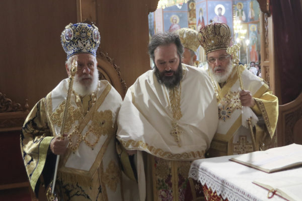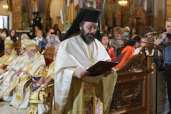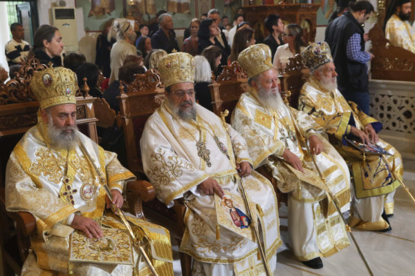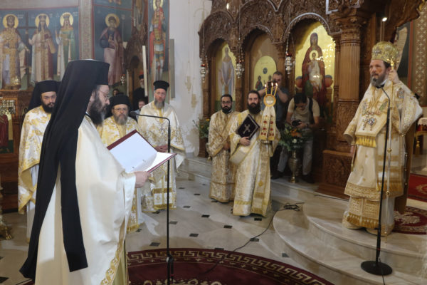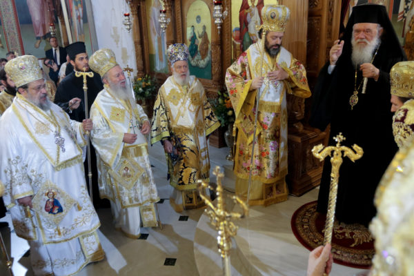Παρουσία του μακαριωτάτου Αρχιεπισκόπου Αθηνών και πάσης Ελλάδος κ. Ιερωνύμου, της πολυαρχιερατικής Θείας Λειτουργίας προέστη ο σεβασμιώτατος Μητροπολίτης Γλυφάδας κ. Αντώνιος, συλλειτουργούντων των σεβασμιωτάτων Μητροπολιτών Σύρου κ. Δωροθέου, Σιδηροκάστρου κ. Μακαρίου, Χαλκίδος κ. Χρυσοστόμου, Κορίνθου κ. Διονυσίου, Μεσσηνίας κ. Χρυσοστόμου, Ιλίου κ. Αθηναγόρα, Θεσσαλιώτιδος κ. Τιμοθέου και Φαναρίου κ. Αγαθαγγέλου.