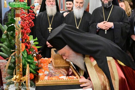 Αφού ευλογήθηκαν οι άρτοι και εψάλησαν τα εγκώμια του Αγίου ενώπιον του αποτμήματος των ιερών λειψάνων του, ο σεπτός Ποιμενάρχης χειροθέτησε εκκλησιαστικούς τέσσερις ευλαβείς νέους της ενορίας. Πρόκειται για τους μαθητές της Α΄ Λυκείου, Παναγιώτη Δημάκο του Ιωάννη, Ευάγγελο Πετράκο του Δημητρίου και Δημοσθένη Ρενέση του Παναγιώτη, καθώς και τον μαθητή της Γ΄ Γυμνασίου, Ευάγγελο Στακιά του Σταματίου.