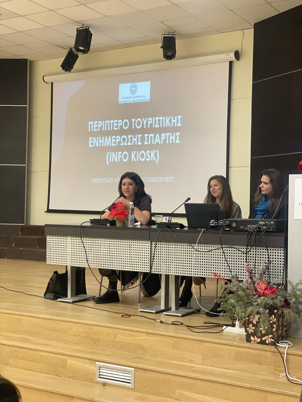Σε ενημερωτική εκδήλωση, την Τετάρτη 20 Δεκεμβρίου, στο Διοικητήριο Λακωνίας παρουσιάστηκαν τα δεδομένα του infokiosk στο πάρκο ΟΤΕ, που περιείχαν τις απόψεις και τάσεις, καθώς και στοχευμένες προτάσεις για αναβάθμιση του τουριστικού προφίλ κι εν γένει των παροχών προς τους Έλληνες και αλλοδαπούς επισκέπτες.