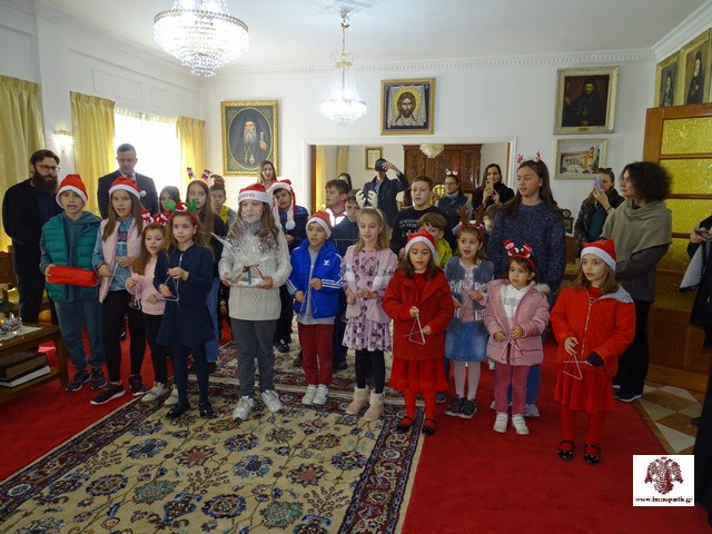 Ιδιαίτερο χρώμα στο εορταστικό κλίμα έδωσαν και μεμονωμένες παρέες παιδιών που βρέθηκαν στο Επισκοπείο, τηρώντας με χαρά το πατροπαράδοτο έθιμο.