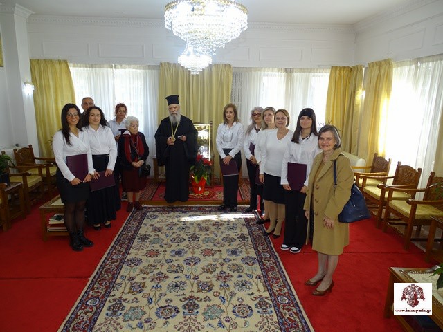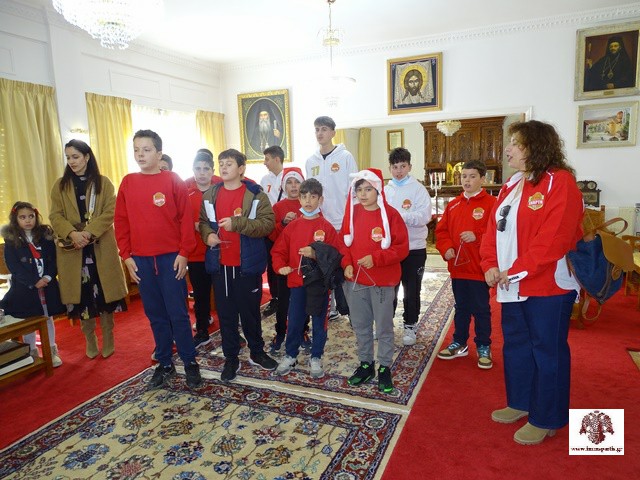 Το πρωί της Παρασκευής 22 Δεκεμβρίου, εξάλλου, ο σεβ. Ποιμενάρχης μας δέχθηκε στο Επισκοπείο τη χορωδία του Στρατοπέδου «Συνταγματάρχη Κωνσταντίνου Δαβάκη», που έψαλε τα παραδοσιακά αλλά και τα βυζαντινά κάλαντα. Ο σεβασμιώτατος ευχαρίστησε την υπαξιωματικό και τους στρατευμένους νέους για την ευγενική χειρονομία τους, ευχήθηκε δε εποικοδομητική θητεία και ο Πανάγαθος Θεός να ευλογεί και να αγιάζει τη ζωή τους.