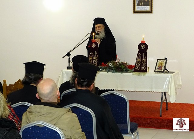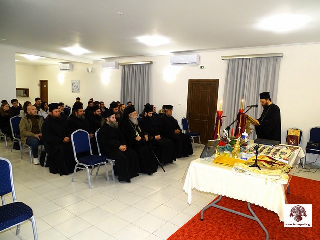 Ακολούθησε η ευλόγηση της βασιλόπιτας από τον σεβασμιώτατο Μητροπολίτη κ. Ευστάθιο, ο οποίος στην ομιλία του αρχικά συνεχάρη τον π. Σεραφείμ για το σημαντικό έργο στην ενορία του και γενικότερα στην τοπική Εκκλησία, ενώ του ευχήθηκε δύναμη ώστε να φέρει εις πέρας με επιτυχία το κομβικής σημασίας διακόνημα που ανέλαβε πρόσφατα στο Γραφείο Νεότητας. Επίσης, ο σεπτός Ποιμενάρχης συνεχάρη τον κ. Θεοδώρου για την εξαιρετικά ενδιαφέρουσα θεολογική ομιλία του, η οποία προσέγγισε πολύπλευρα τους προβληματισμούς των νέων. Ακολούθως, αναφέρθηκε στην αξιοποίηση του χρόνου μας στη Γη, στην ανάγκη καθοδήγησης των νέων ανθρώπων, αλλά και στην σπουδαιότητα της άρτιας λειτουργίας των κατασκηνώσεων και των κατηχητικών συντροφιών.