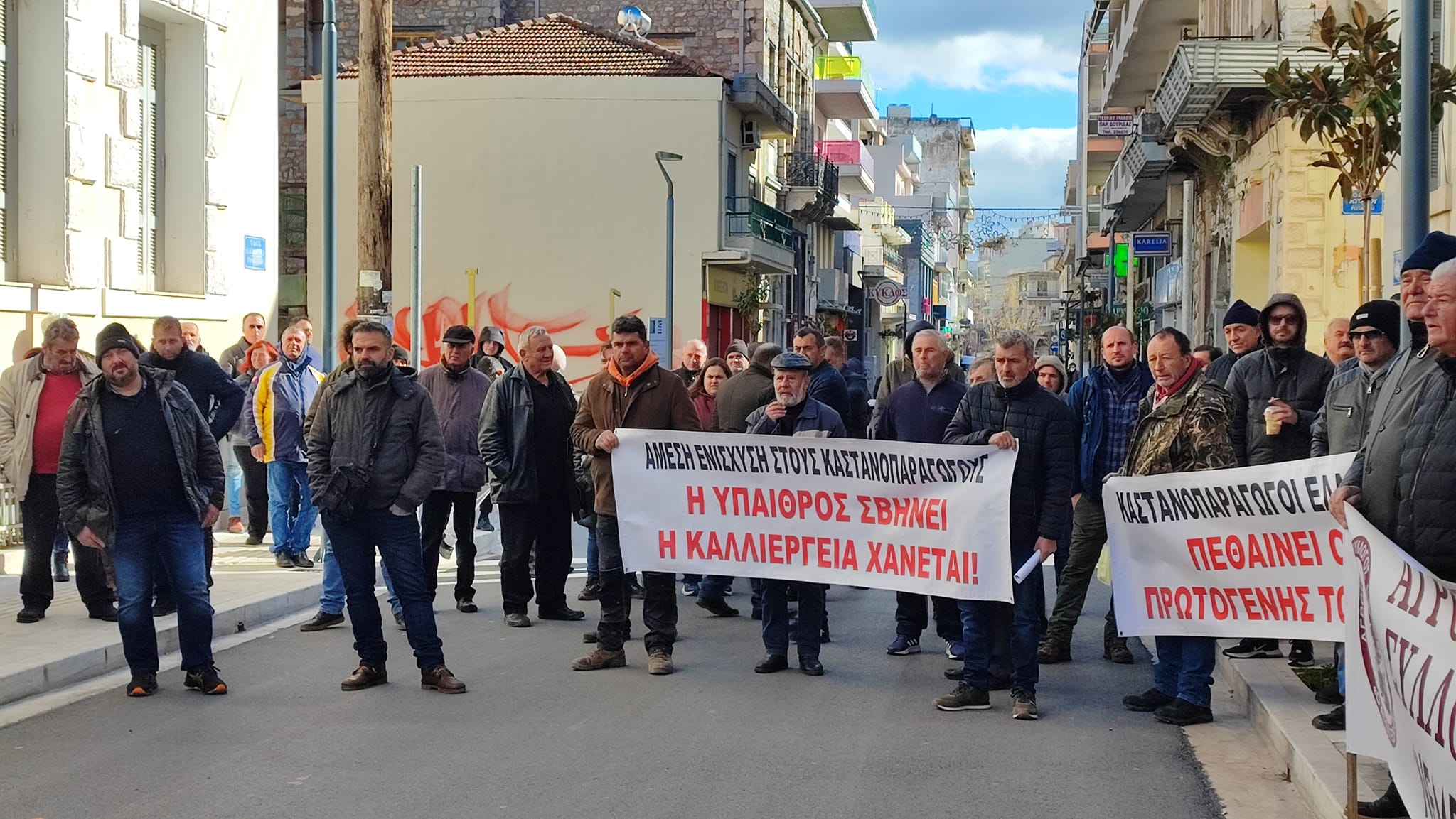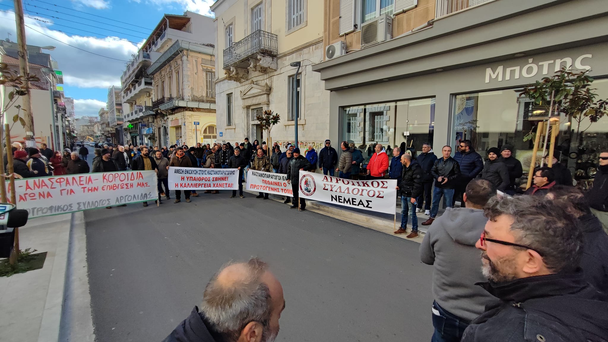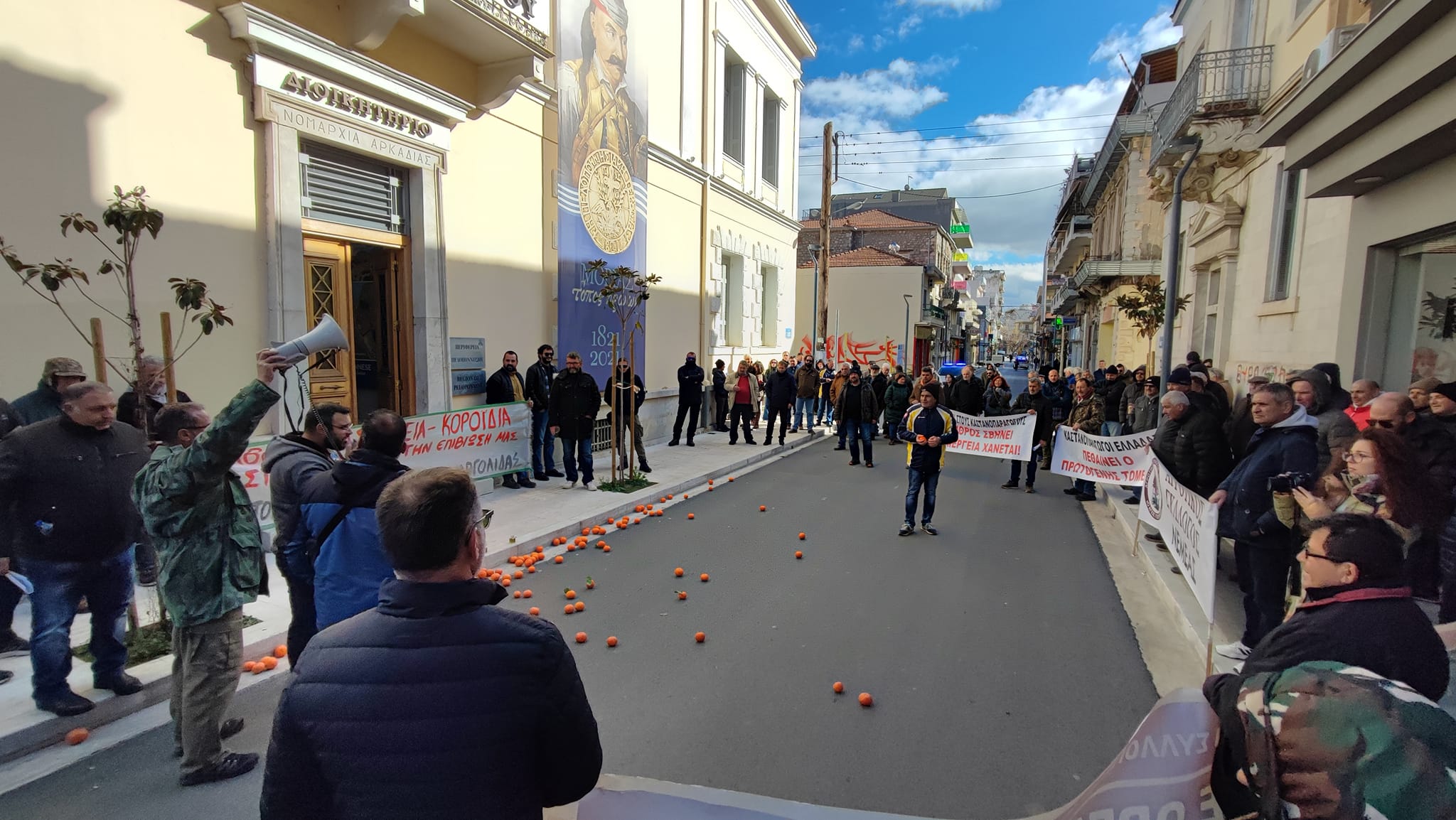 Μετά από κάλεσμα της Ομοσπονδίας Αγροτικών Συλλόγων Περιφέρειας Πελοποννήσου (ΟΑΣΠΠ), συγκεντρώθηκαν στον σταθμό του ΟΣΕ στην είσοδο της πόλης και από εκεί κατευθύνθηκαν με πανό και συνθήματα στο Διοικητήριο της Περιφέρειας Πελοποννήσου στην πλατεία Εθνάρχου Μακαρίου. Οι αγανακτισμένοι παραγωγοί δεν δίστασαν να πετάξουν μπροστά από τον χώρο εσπεριδοειδή (πορτοκάλια-μανταρίνια), που όπως ισχυρίζονται βρίσκονται στα αζήτητα. Επίσης, άφησαν συμβολικά στο πεζοδρόμιο μπουκαλάκια με λίγα λίτρα ελαιολάδου, θέλοντας να καταδείξουν τη φετινή περιορισμένη παραγωγή λόγω της ακαρπίας.